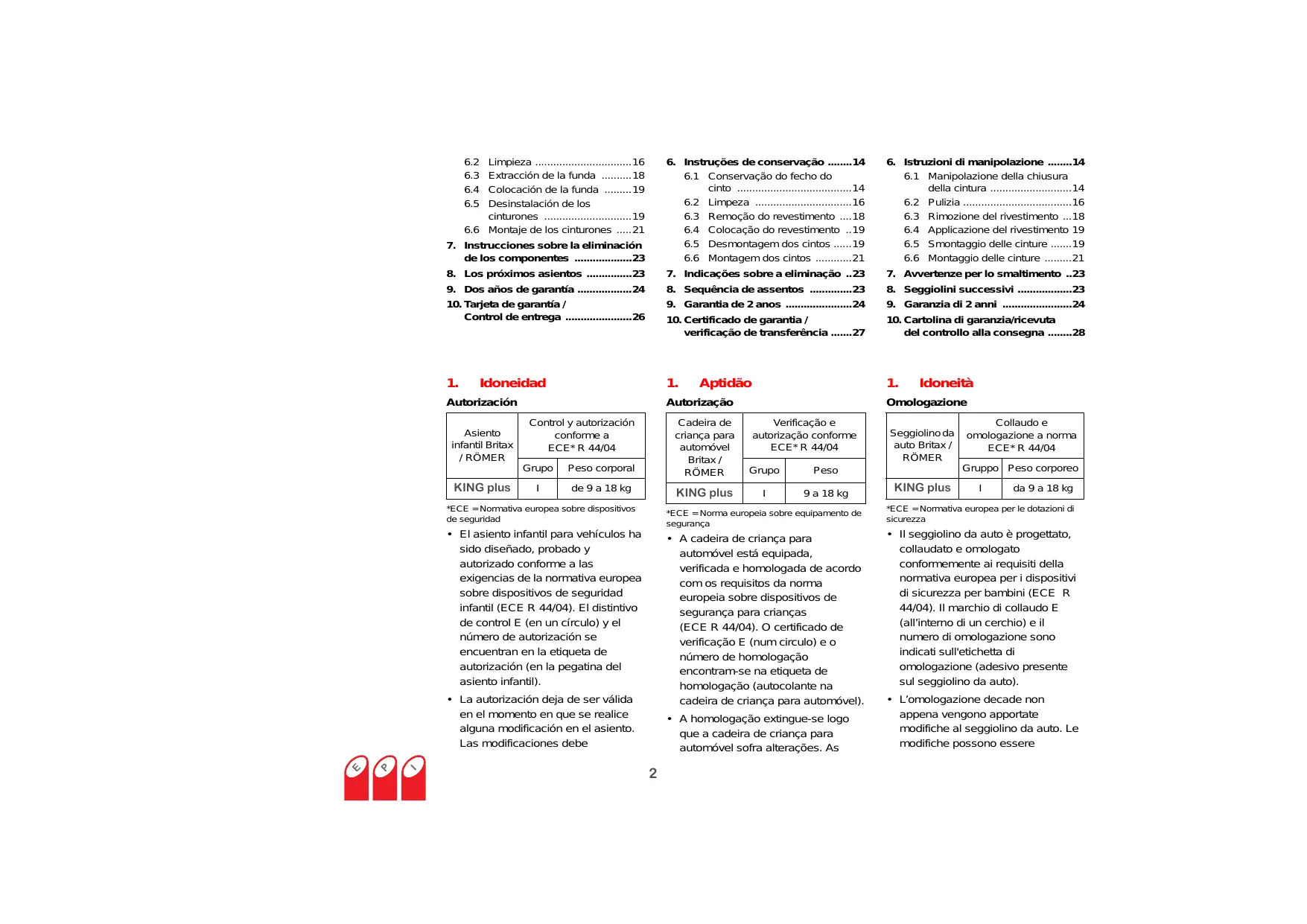 +_A cadeira de criança para automével esté equipada, verificada e homologada de acordo com os requisitos da norma europeia sobre dispositivos de Segurança para crianças (ECE R 44/04). O certificado de verificaçäo E (num circulo) e o nümero de homologaçäo encontramr-se na etiqueta de homologaçäo (autocolante na cadeira de criança para automével).