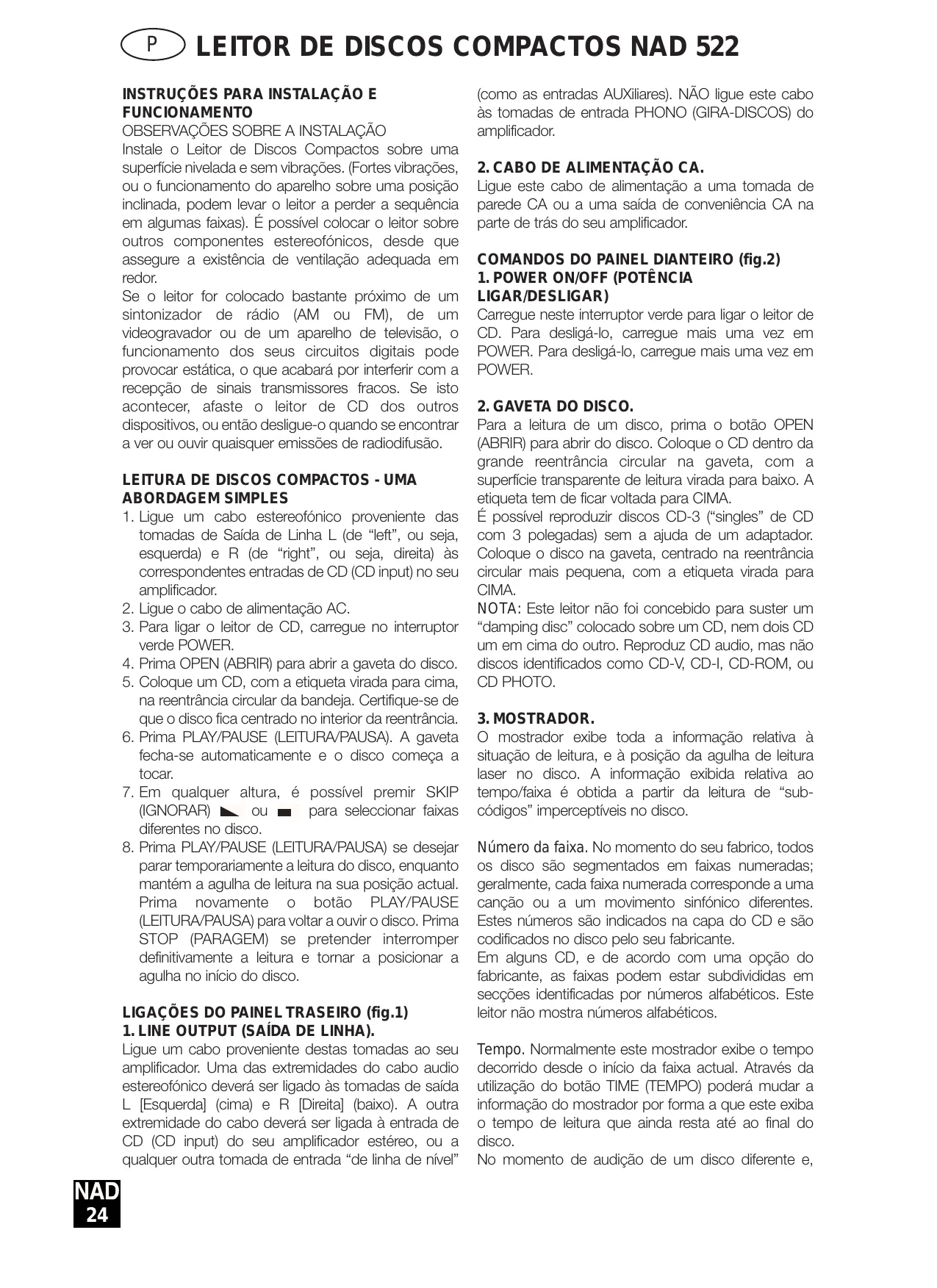 Encontre gratuitamente o manual do aparelho 522 NAD em formato PDF.