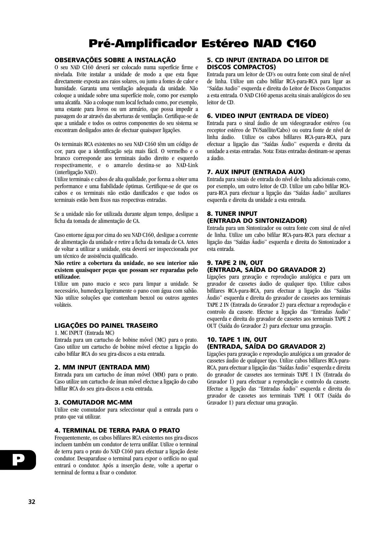 C160 - Pré-amplificador de áudio NAD - Manual de utilização gratuito