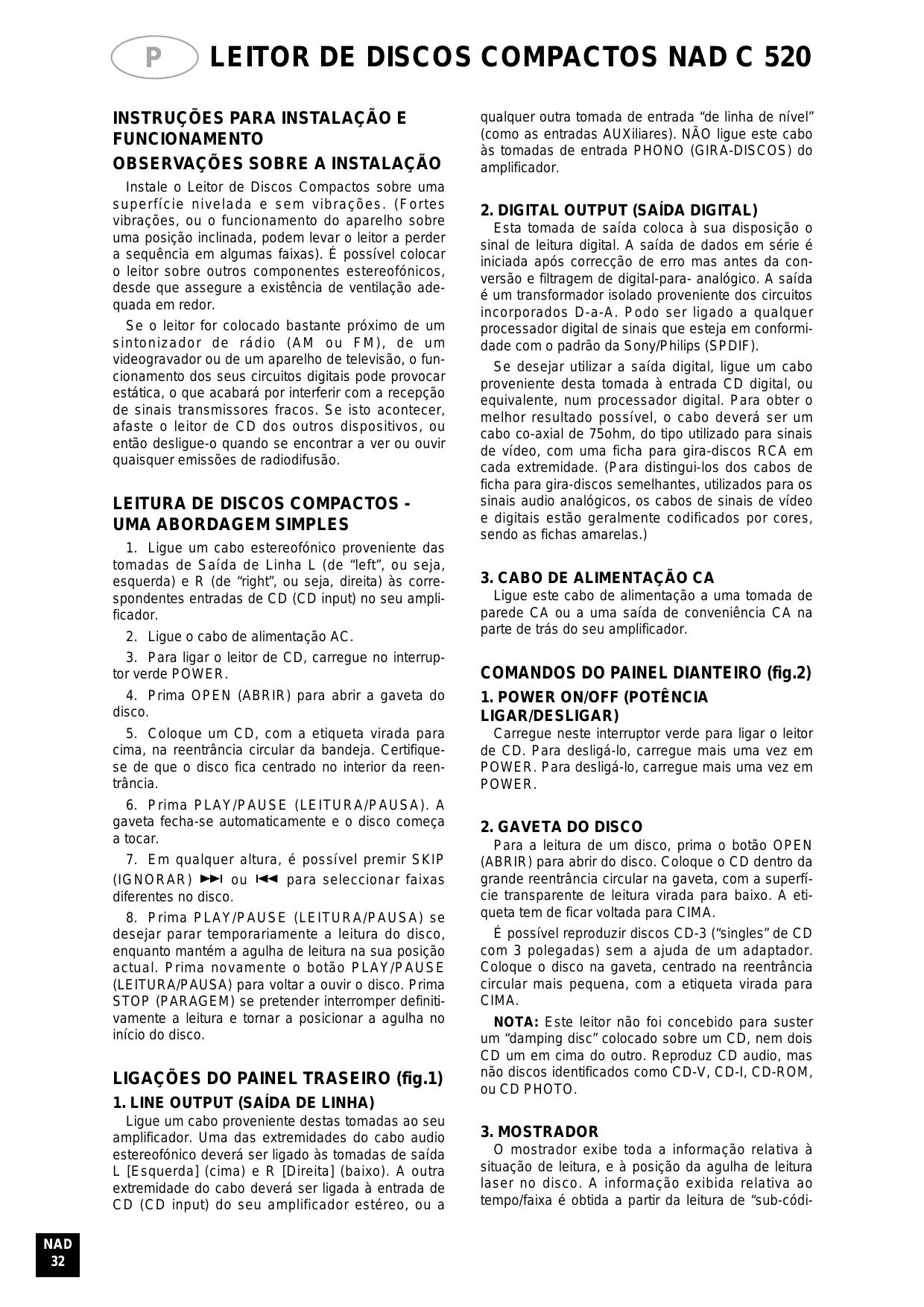 C520 - Leitor de CD NAD - Manual de utilização gratuito