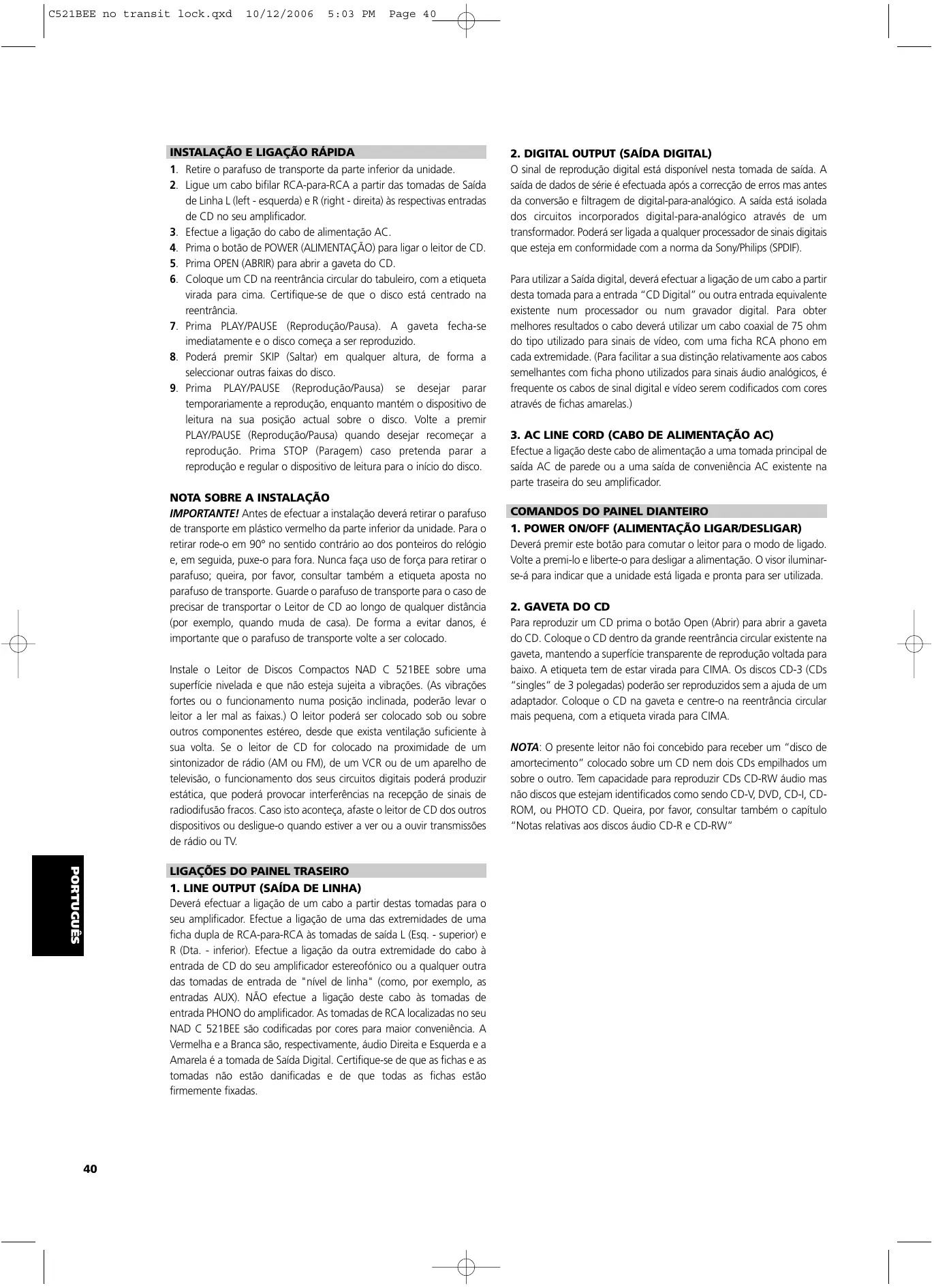 C521BEE - Leitor de CD NAD - Manual de utilização gratuito