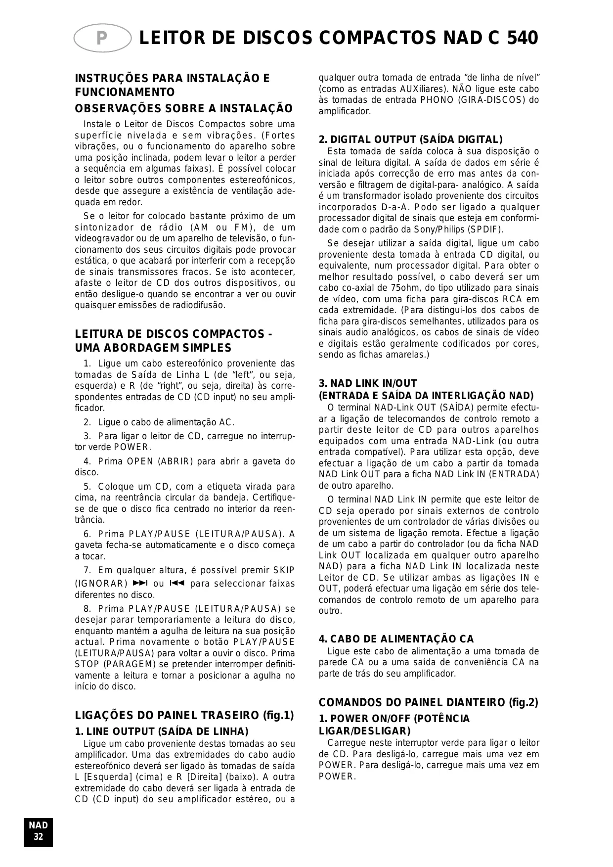 C540 - Leitor de CD NAD - Manual de utilização gratuito