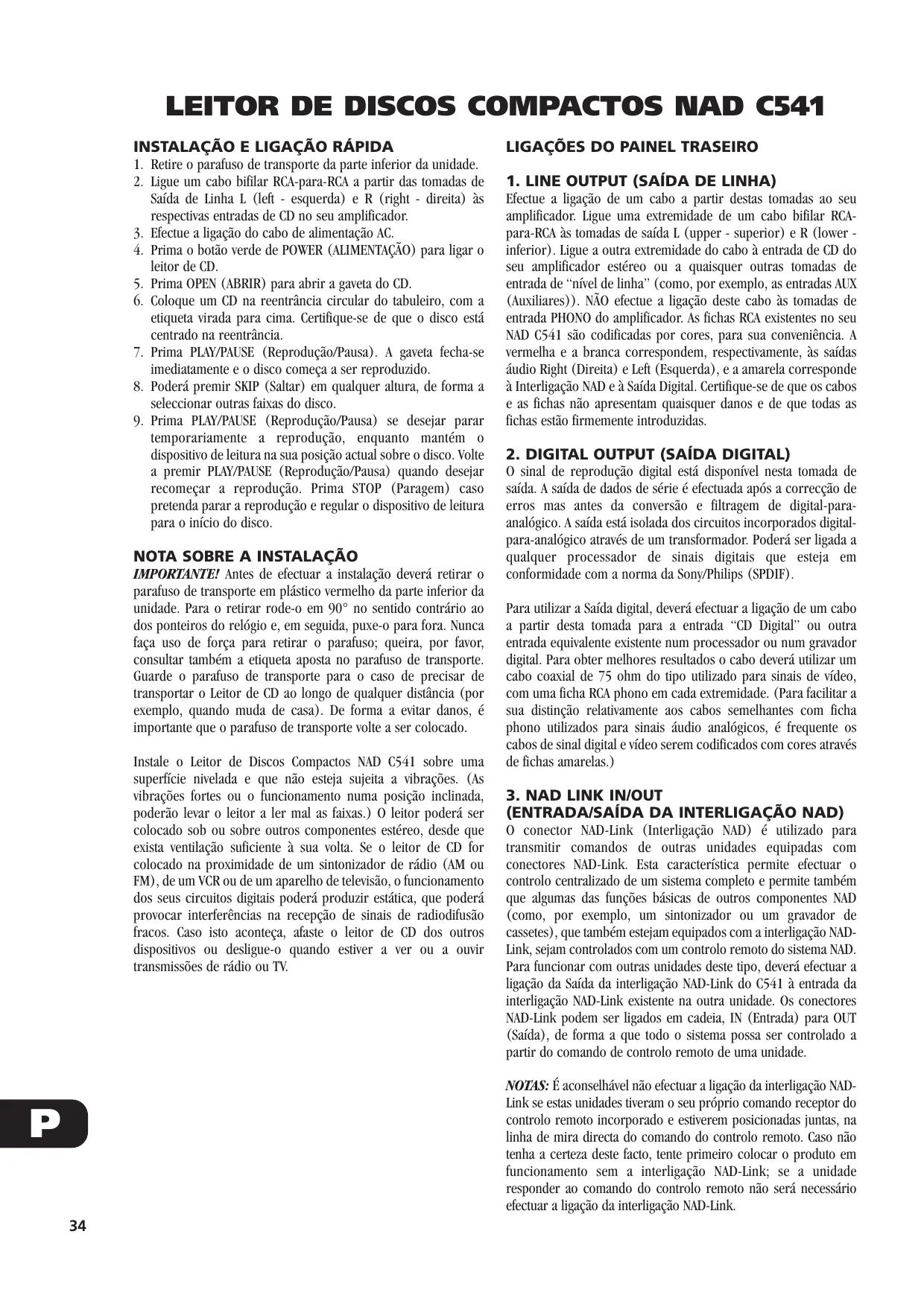 Encontre gratuitamente o manual do aparelho C541 NAD em formato PDF.