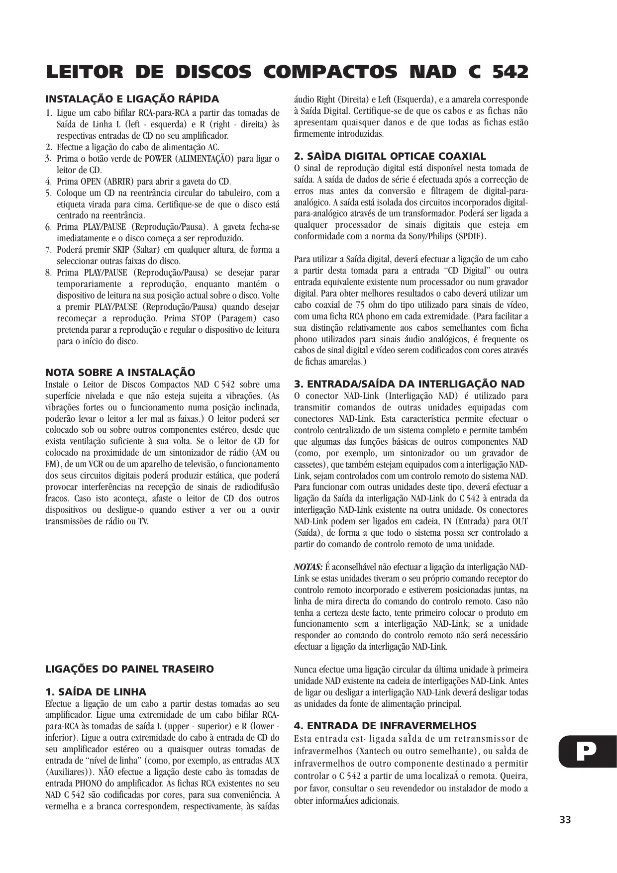 C542 - Leitor de CD NAD - Manual de utilização gratuito