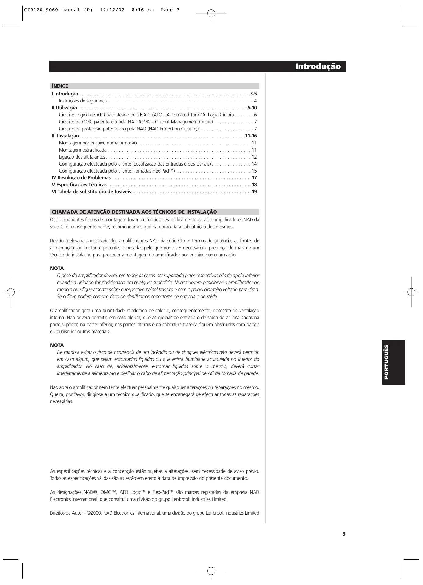 Encontre gratuitamente o manual do aparelho CI9060 NAD em formato PDF.