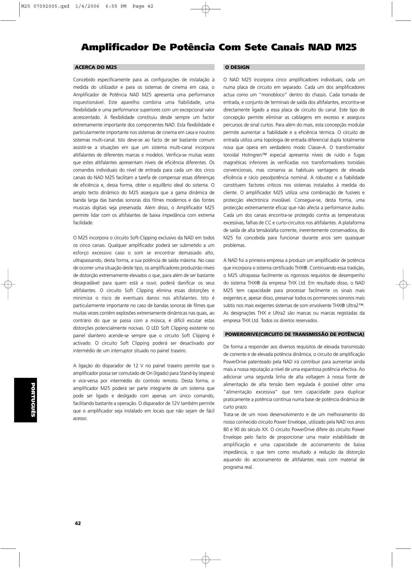 M25 07092005.qxd 1/4/2006 6:55 PM Page 42 Amplificador De Potência Com Sete Canais NAD M25