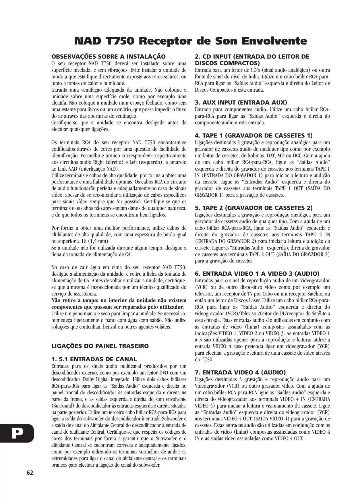 Encontre gratuitamente o manual do aparelho T750 NAD em formato PDF.