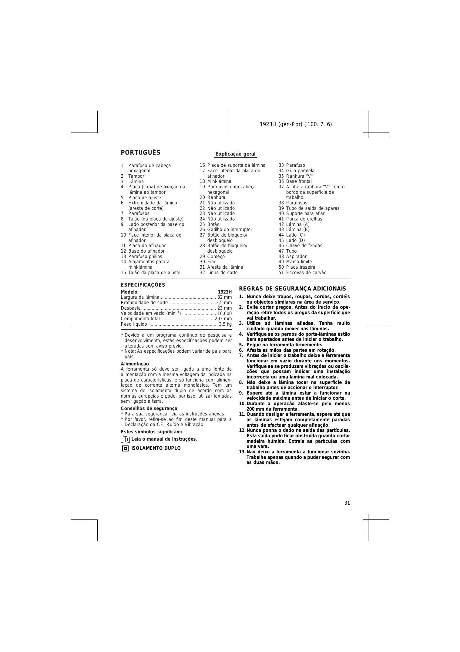 MANUAL DE UTILIZADOR 1923H MAKITA