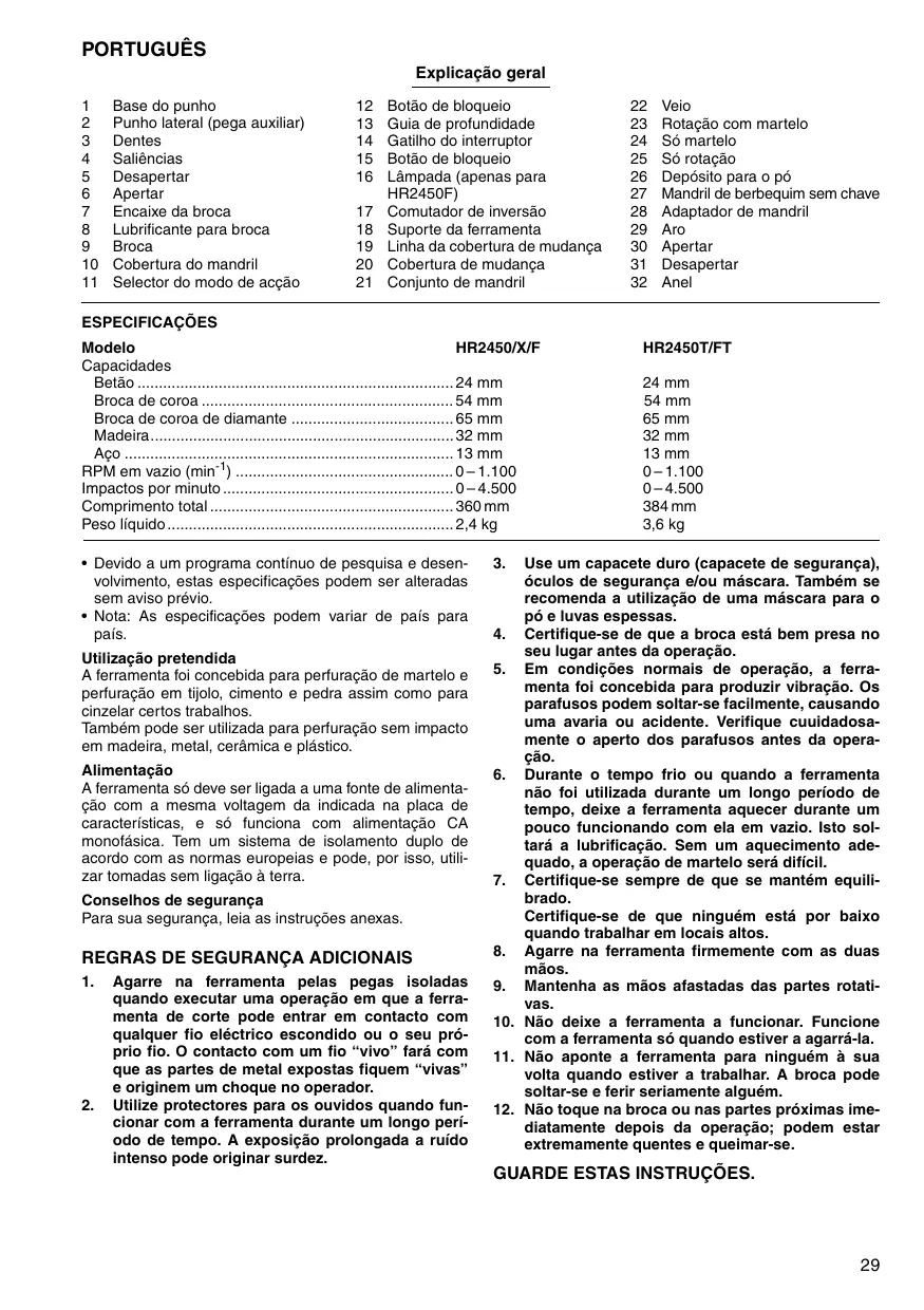 Encontre gratuitamente o manual do aparelho HR2450X8 MAKITA em formato PDF.