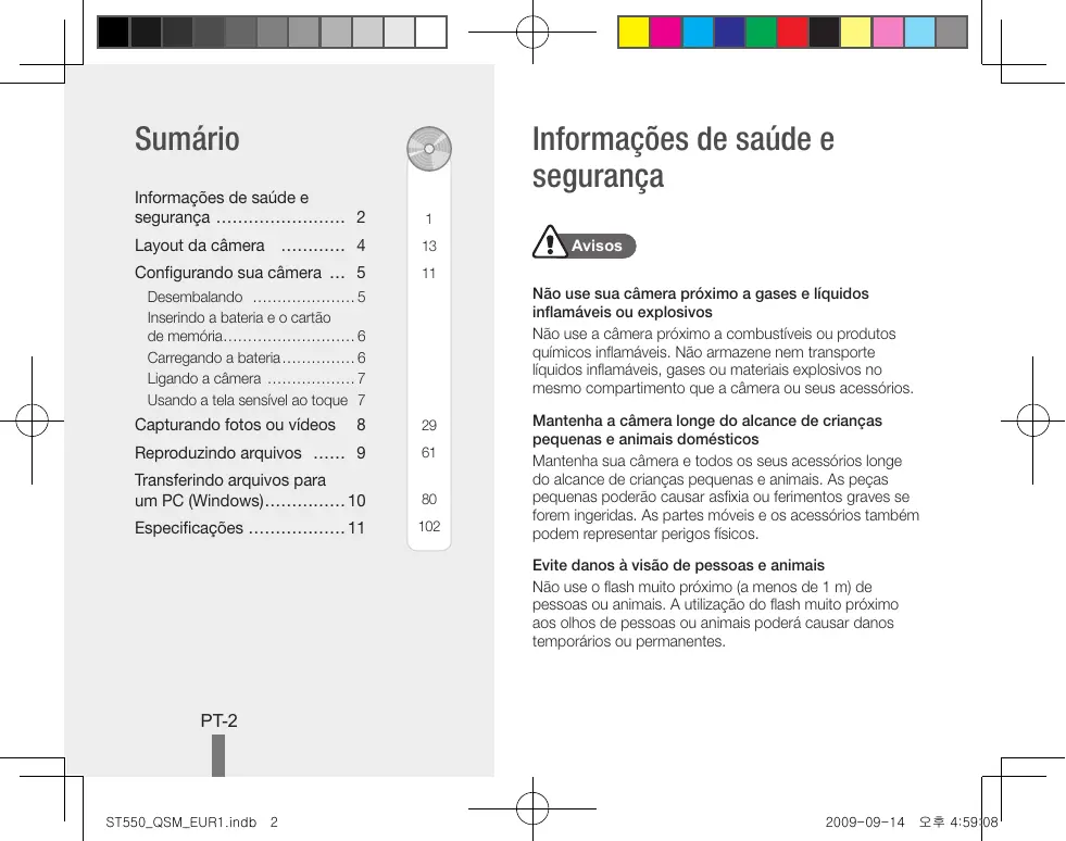 Nederlands Opslag NL-11 ST550_QSM_EUR1.indb 11 2009-09-14 오후 4:59:08 Sumário Informações de saúde e segurança Informações de saúde e segurança……………………… 2
