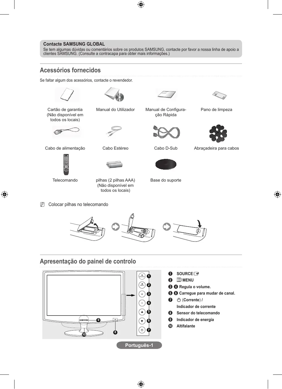 Telecomando pilhas (2 pilhas AAA) {Näo disponivel em todos os locais) Colocar pilhas no telecomando