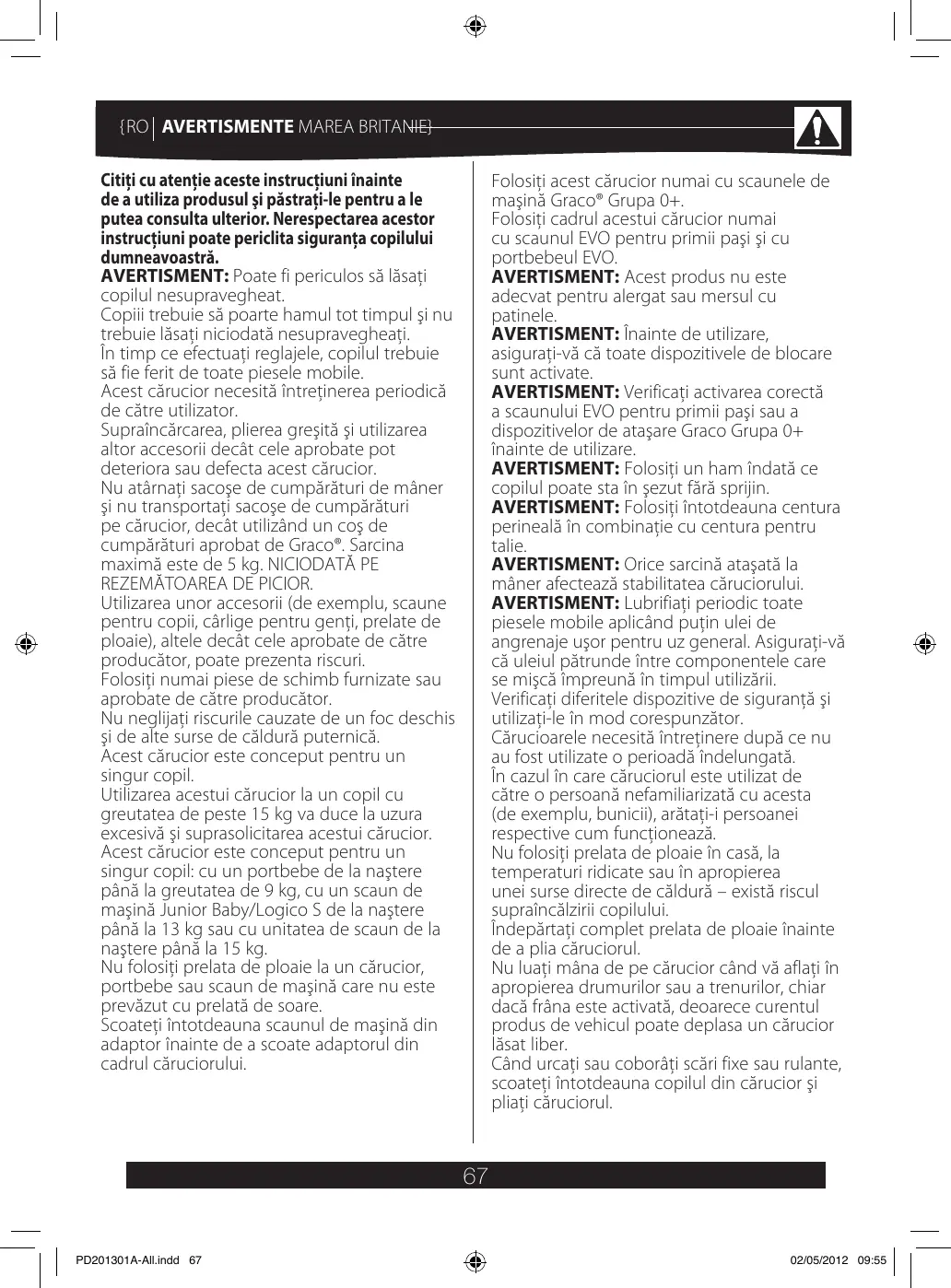 EVO TS - Cărucioare GRACO - Notice d'utilisation et mode d'emploi gratuit