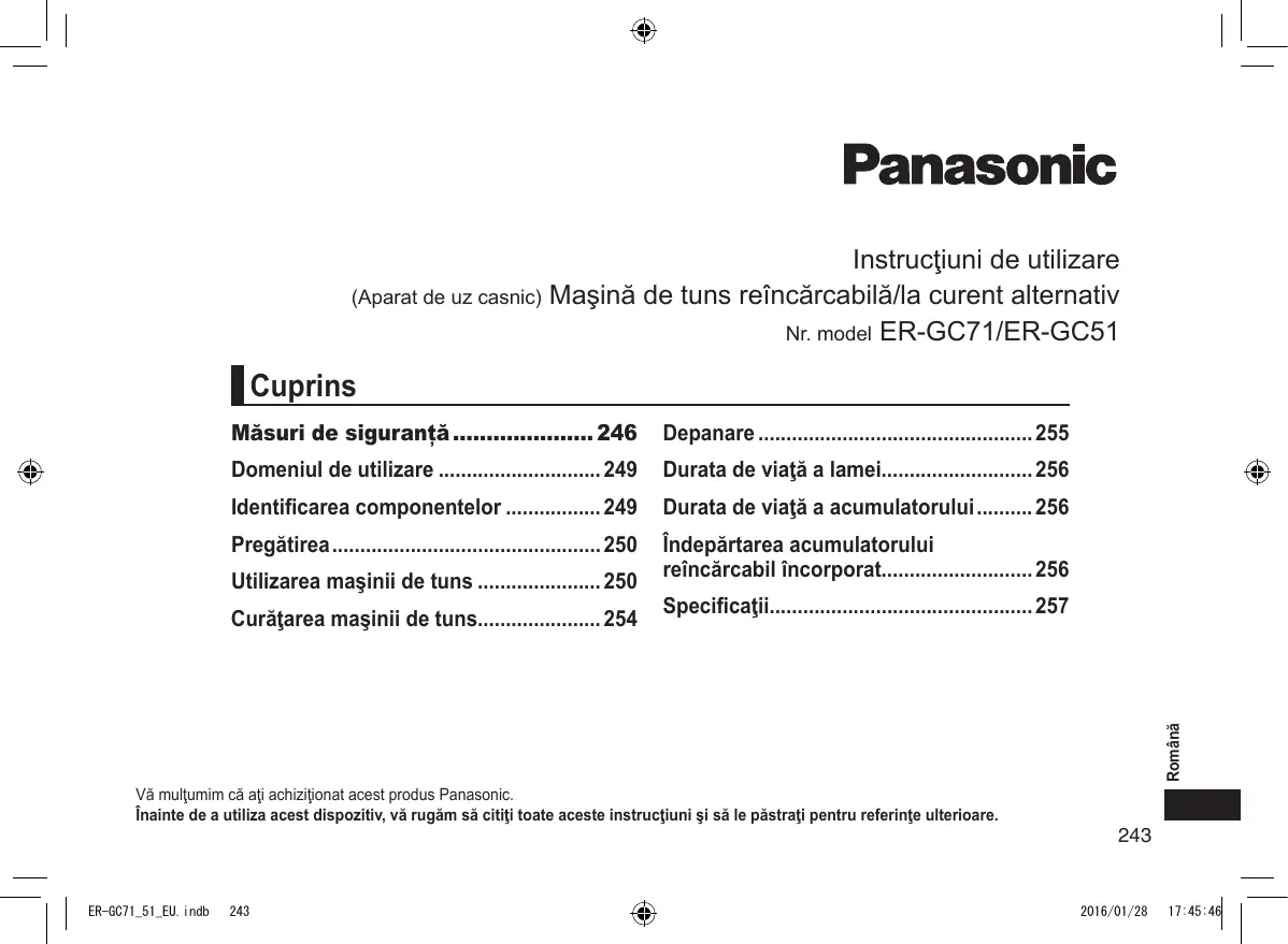 MANUAL DE UTILIZARE ER-GC51 PANASONIC