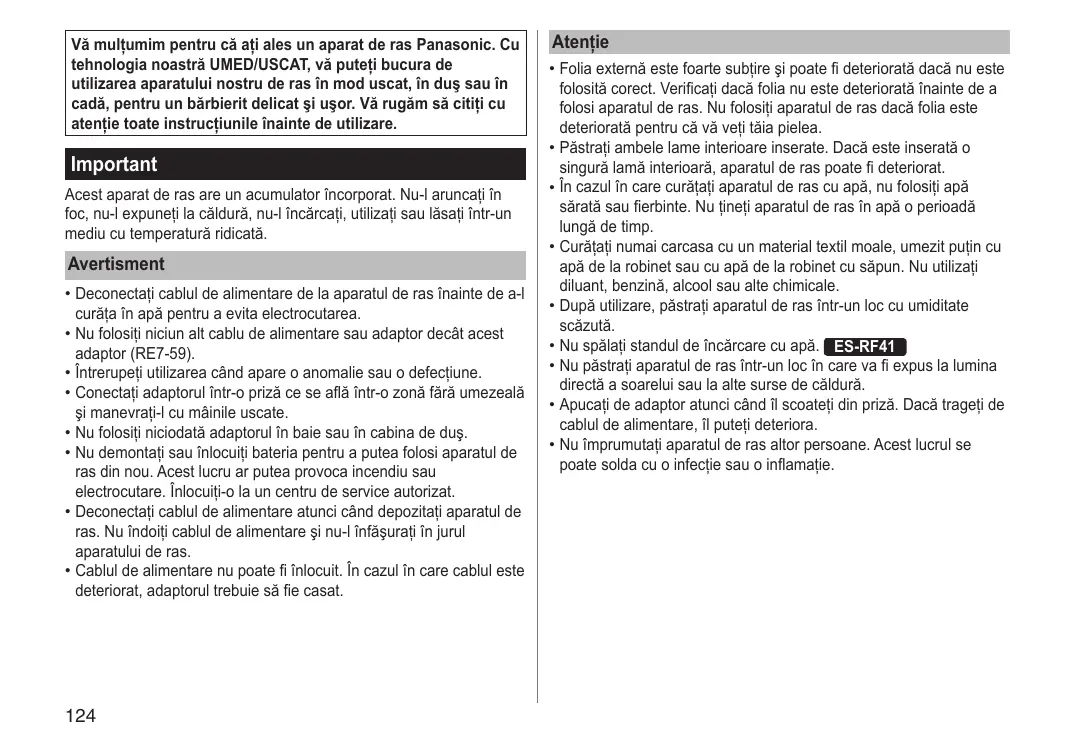 MANUAL DE UTILIZARE ES-RF41 PANASONIC