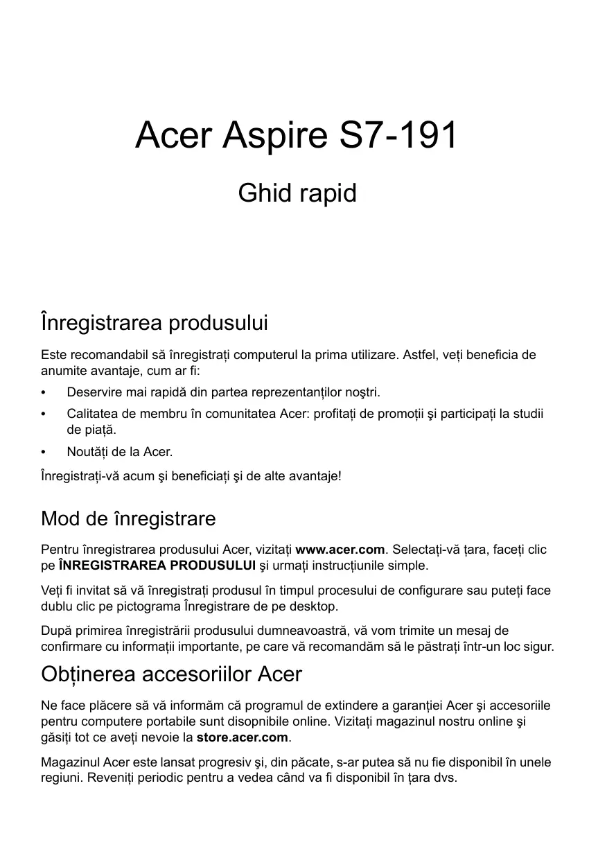 MANUAL DE UTILIZARE ASPIRE S7-191 ACER