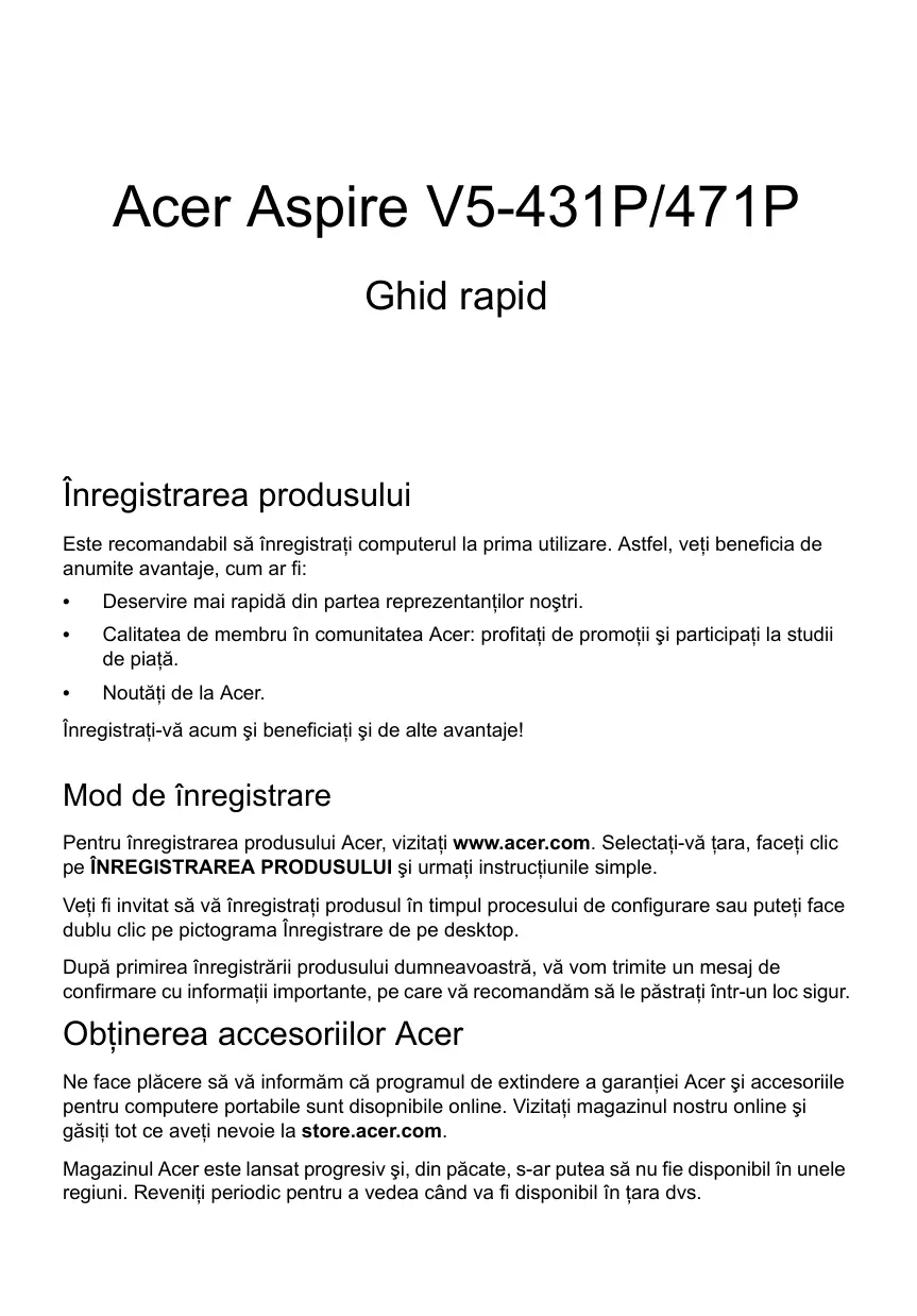 MANUAL DE UTILIZARE ASPIRE V5-431P ACER
