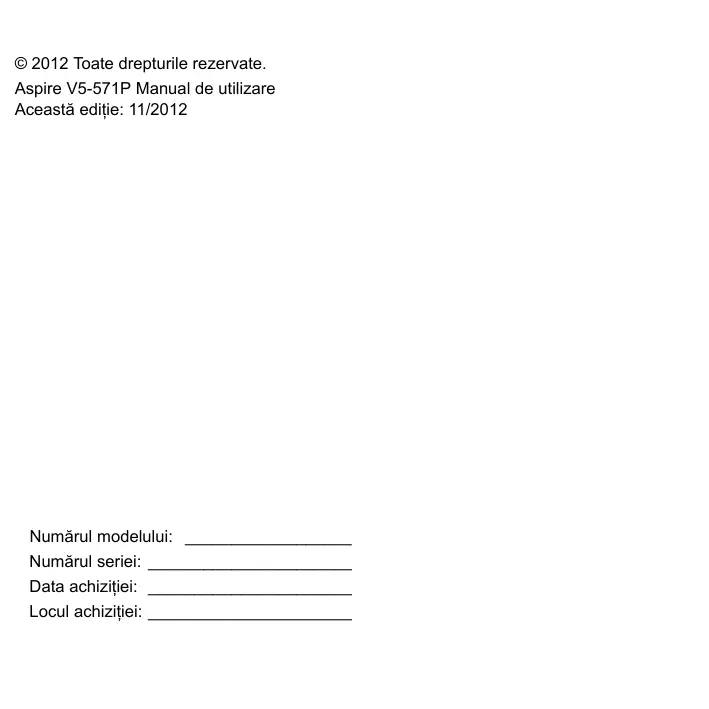 © 2012 Toate drepturile rezervate. Aspire V5-571P Manual de utilizare Această ediţie: 11/2012