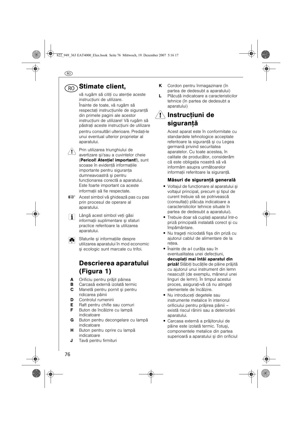 Înainte de toate, vă rugăm să respectăti instruciunile de siguranta din primele pagini ale acestor instruciuni de Utilizare! Vă rugăm să păstrați acoste instruciuni de Utilizare pentru consultări ulterioare. Predați-le unui eventual ulterior proprietar al aparatului.