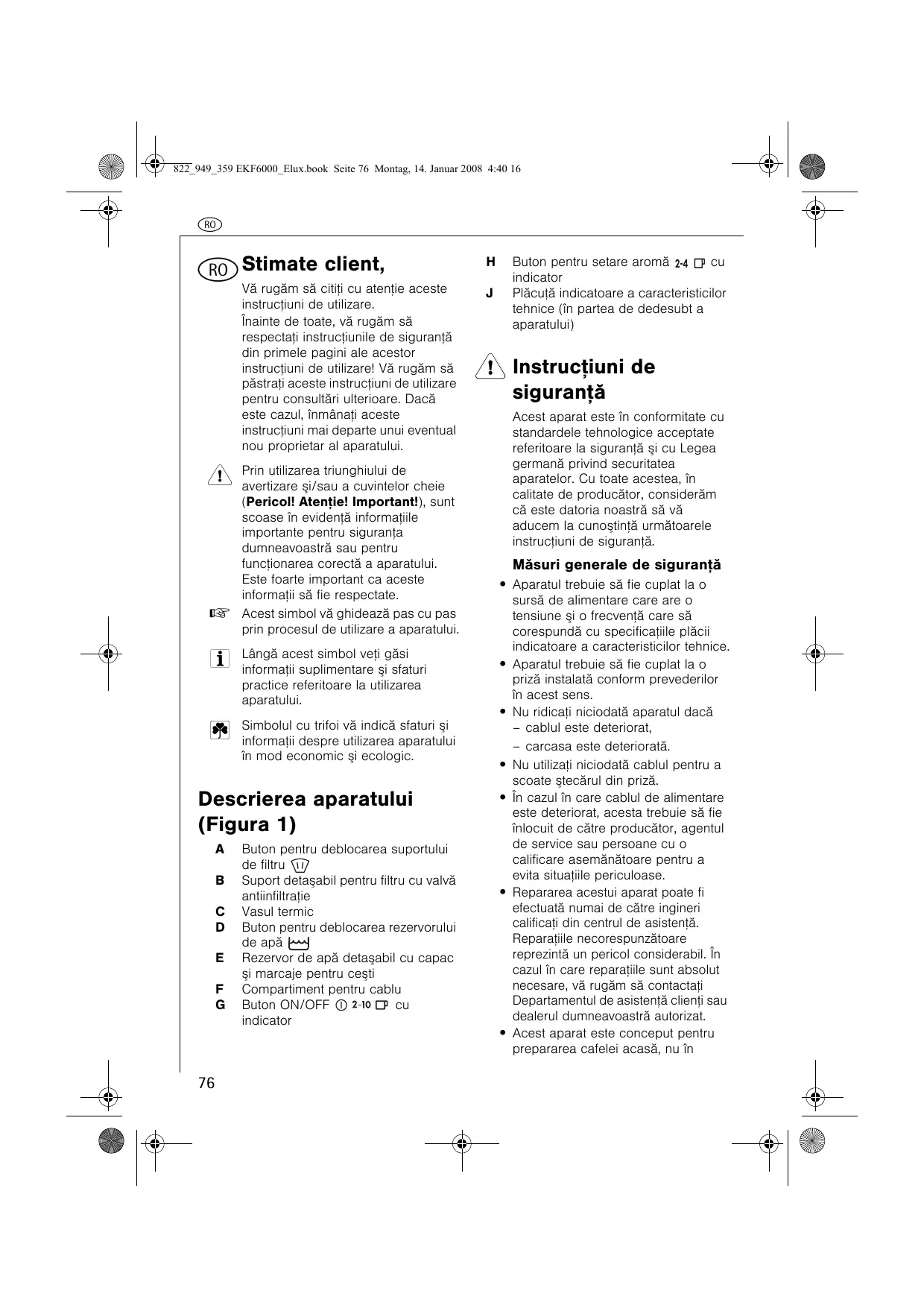 - Acest aparat este conceput pentru prepararea cafelei acasã, nu în 822_949_359 EKF6000_Elux.book Seite 77 Montag, 14. Januar 2008 4:40 16