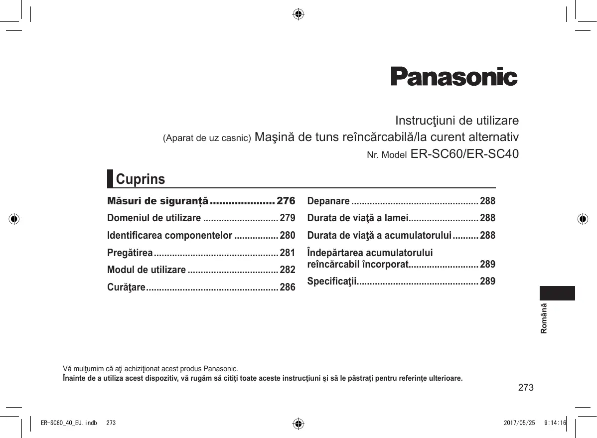 Téléchargez la notice de votre Mașină de tuns părul au format PDF gratuitement ! Retrouvez votre notice ERSC60 - PANASONIC et reprennez votre appareil électronique en main. Sur cette page sont publiés tous les documents nécessaires à l'utilisation de votre appareil ERSC60 de la marque PANASONIC.