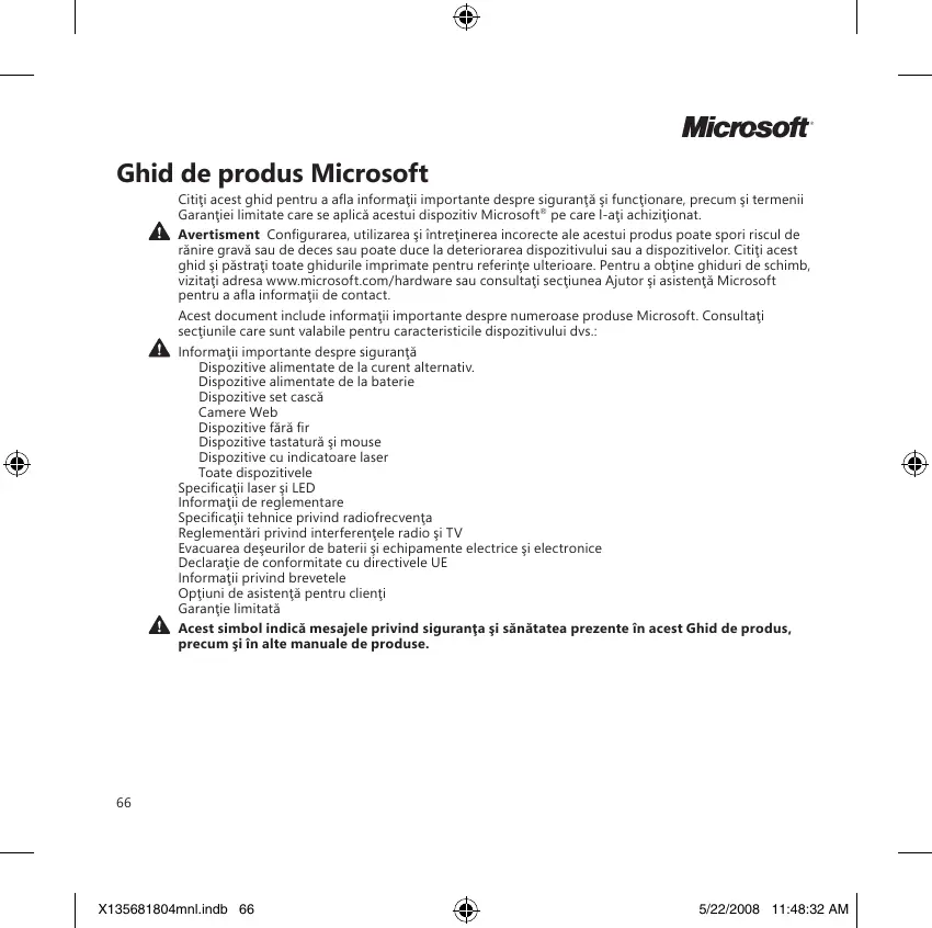 Găsiți gratuit manualul dispozitivului WIRELESS LASER MOUSE 6000 MICROSOFT în format PDF.