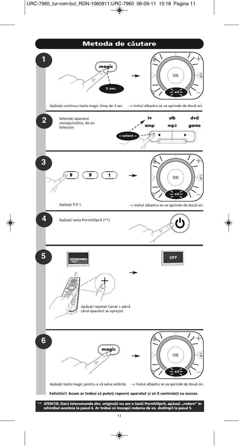 MANUAL DE UTILIZARE URC-7960, URC 7962 ONE FOR ALL