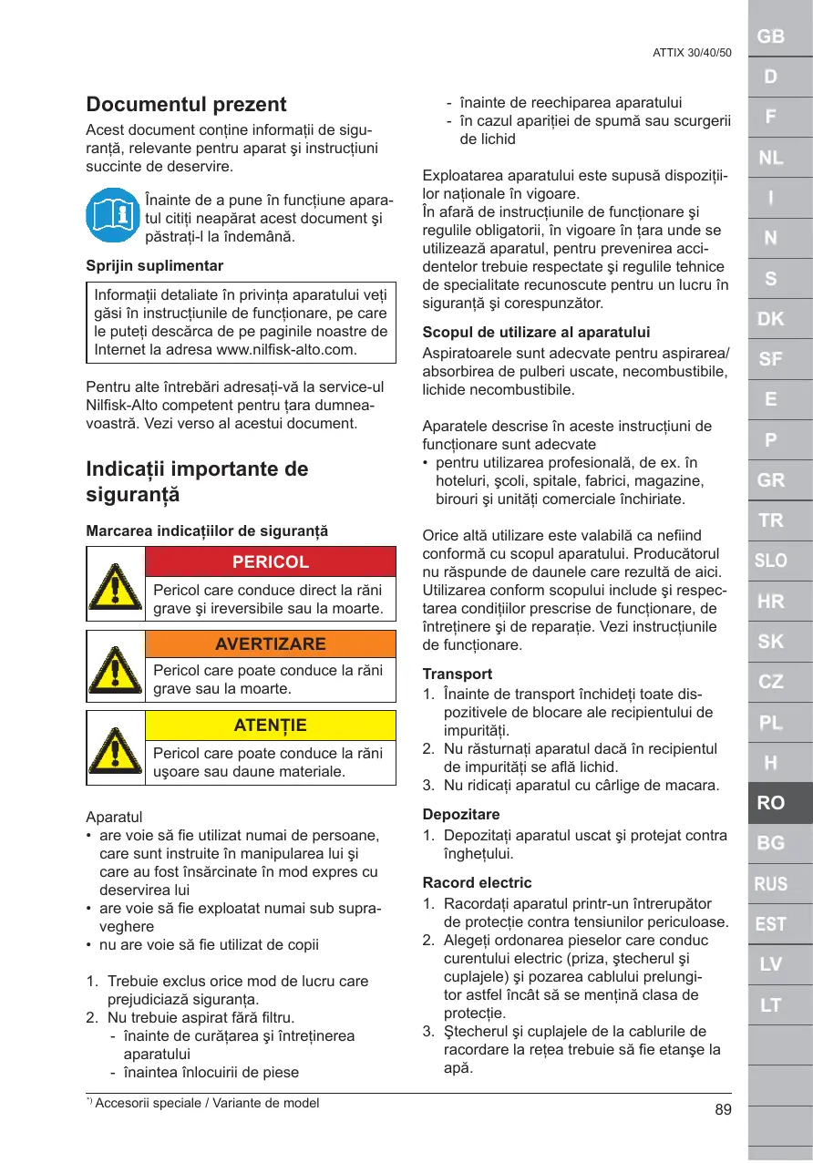MANUAL DE UTILIZARE ATTIX 30 BATT NILFISK
