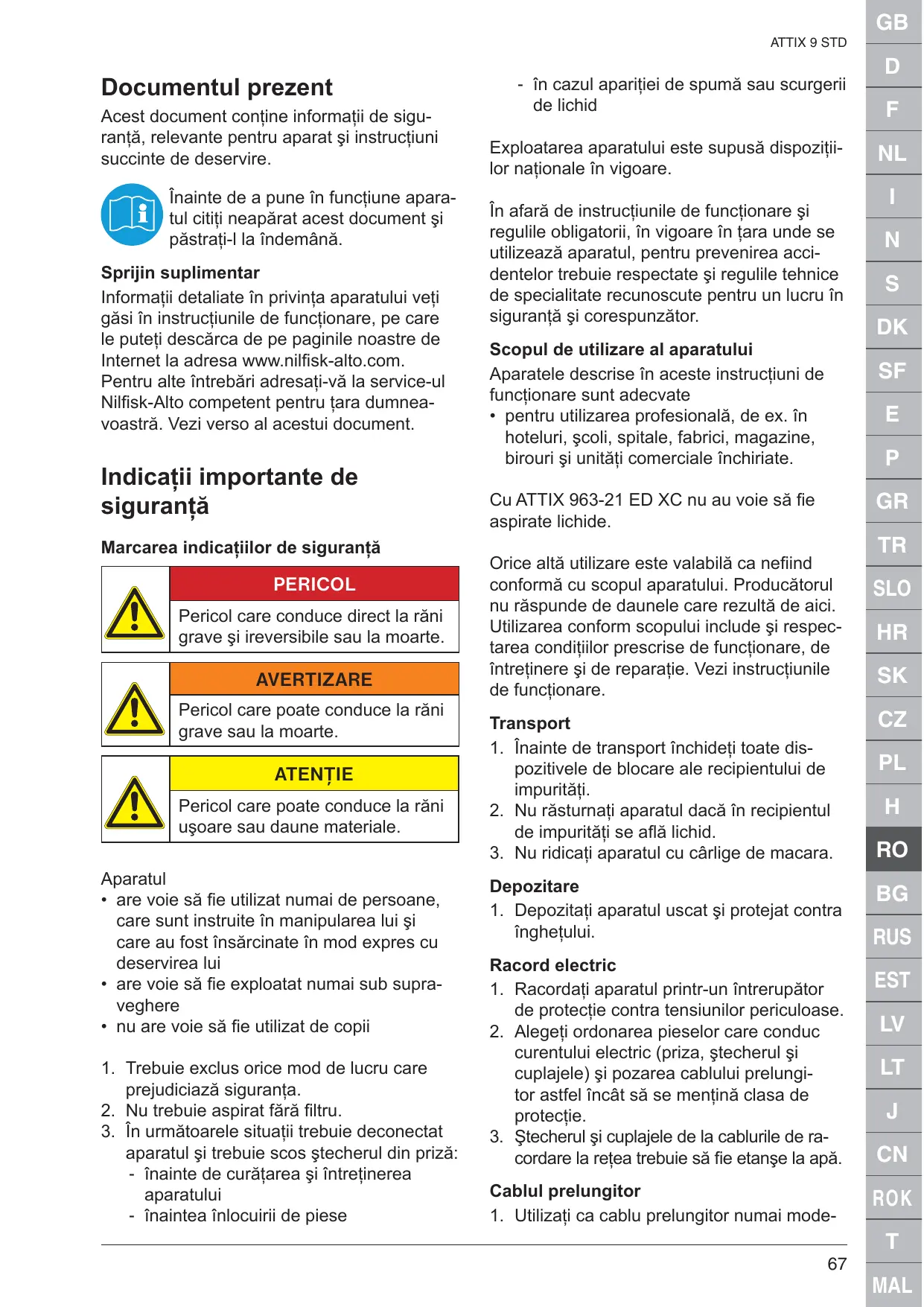Informati detaliate în privinta aparatului veti gäsi în instructiunile de functionare, pe care le puteti descärca de pe paginile noastre de Internet la adresa www.nilfisk-alto.com. Pentru alte întrebäri adresati-vä la service-ul Nilfisk-Alto competent pentru tara dumnea- voasträ. Vezi verso al acestui document.