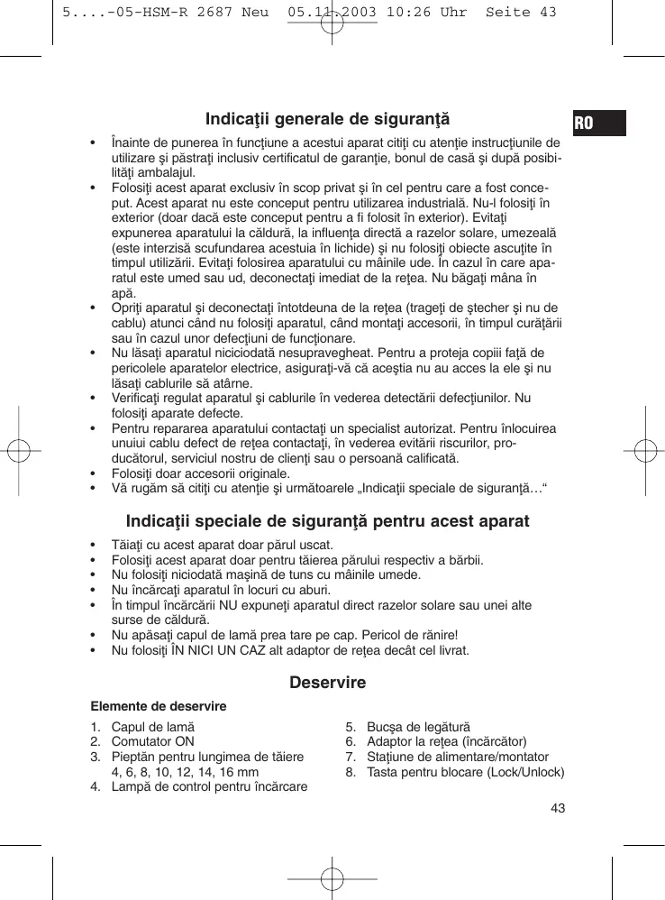 MANUAL DE UTILIZARE HSMR 2687 CLATRONIC