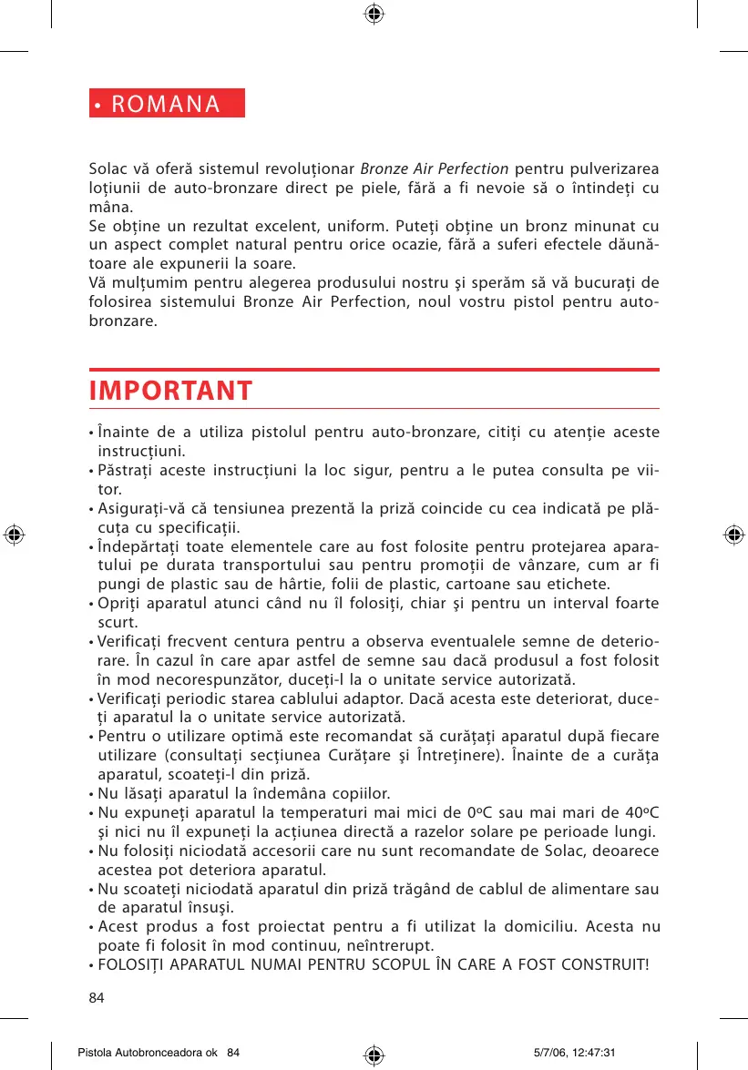- Inainte de a utilizes pistolul pentru auto-bronzare, citi ci cu atentie acste instrutiuri.