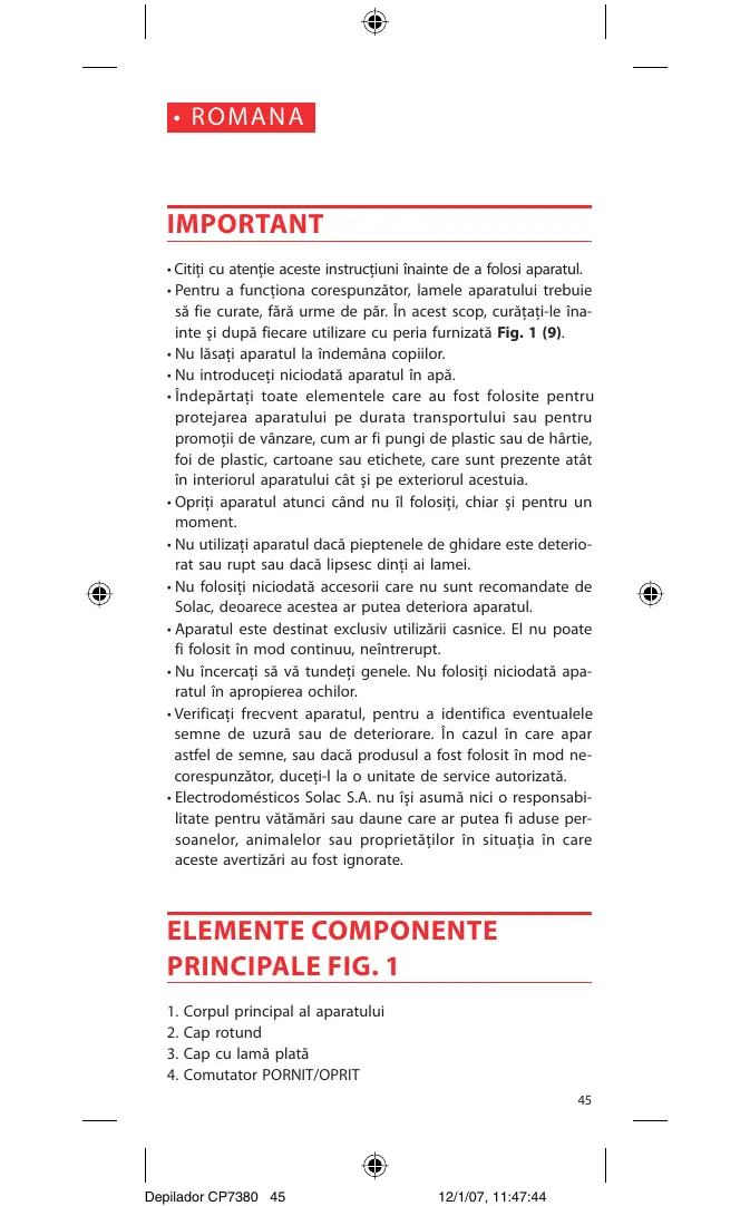 - Electrodomésticos Solac S.A. nu és asuma nici o responsabilitate pentru vătamăi sau daune care ar putea fi aduse personelor, animalelor Sau proprietăților in situția in care aceste averizări au fost ignorerate.