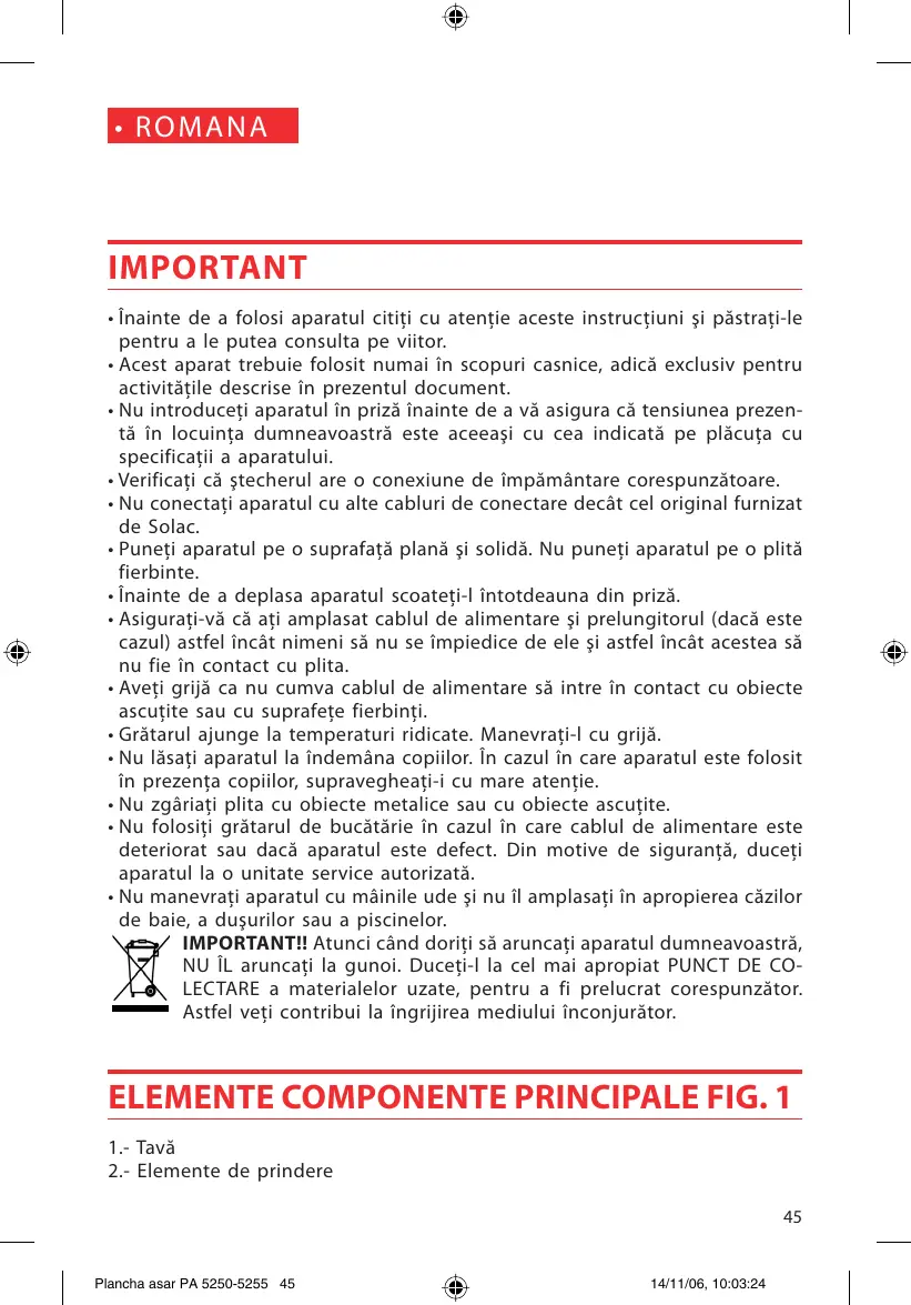 IMPORTANT!! Atunci candidoriti sā aruncaṭi aparatul dumneavoastrā, NU l aruncaṭi la gunoi. Duceṭi-l la cel mai apropriat PUNCT DE COLECTARE a materialelor uzate, pentru a fi prelimucrat corespunzător. Astfel veṭi contribui la ingrijirea mediuìlū inconjurător.