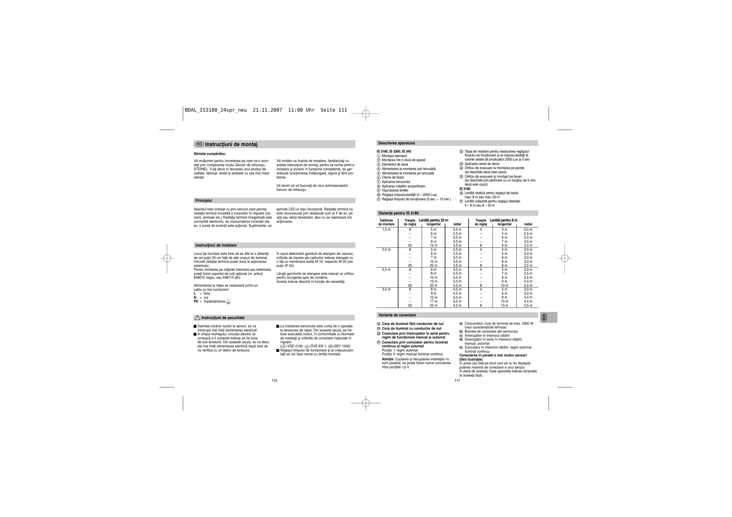 MANUAL DE UTILIZARE IS 3180 STEINEL