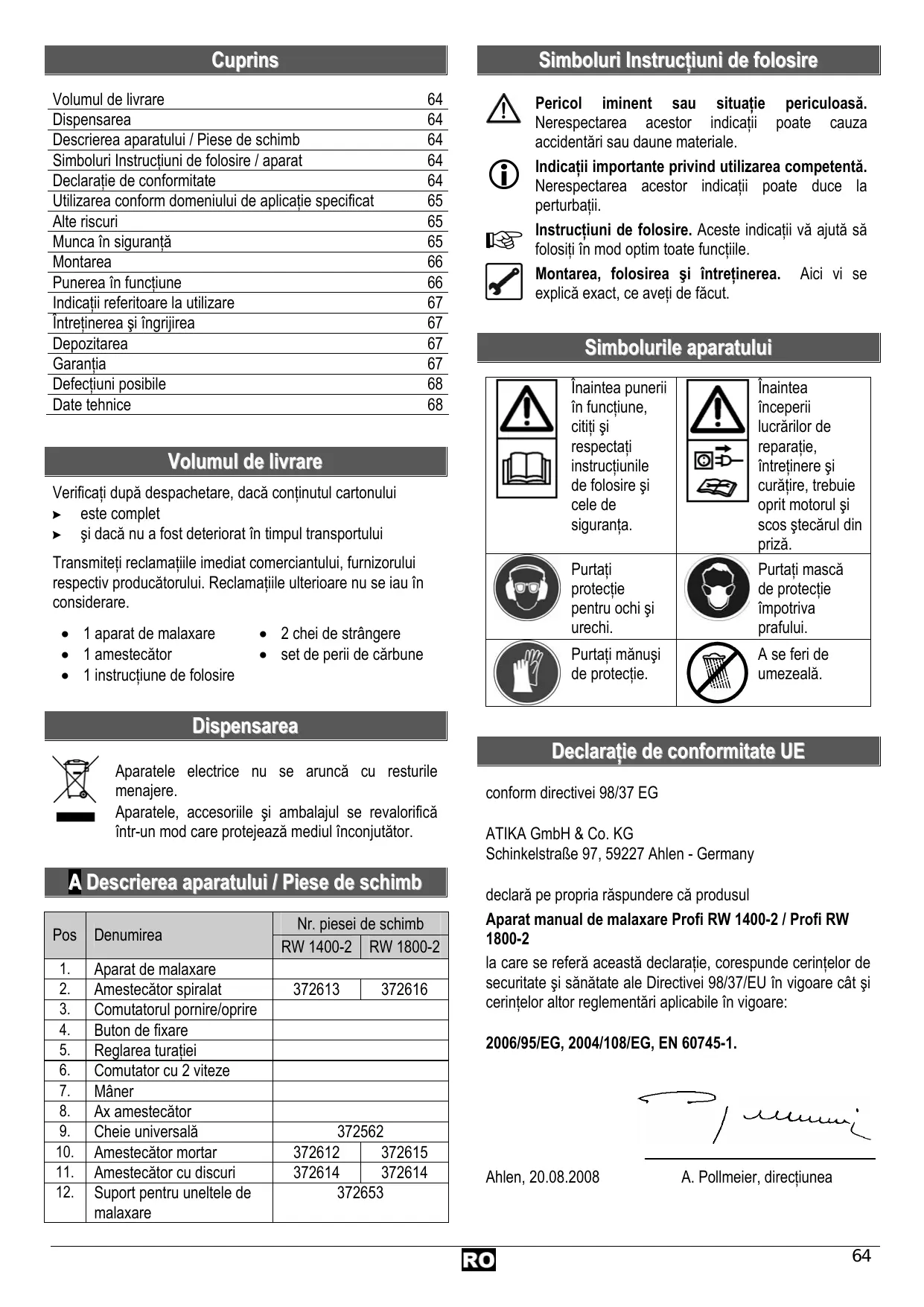 MANUAL DE UTILIZARE PROFI 1800-2 ATIKA