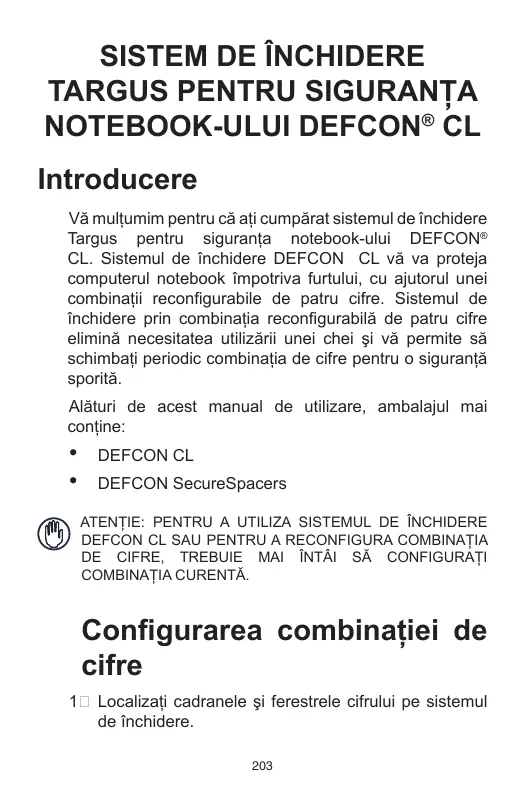 MANUAL DE UTILIZARE NOTEBOOK SECURITY DEFCON CL TARGUS