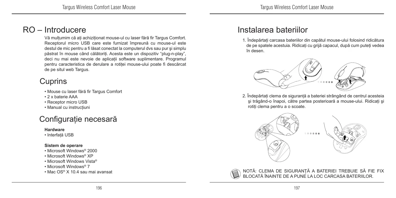 MANUAL DE UTILIZARE WIRELESS COMFORT LASER MOUSE TARGUS