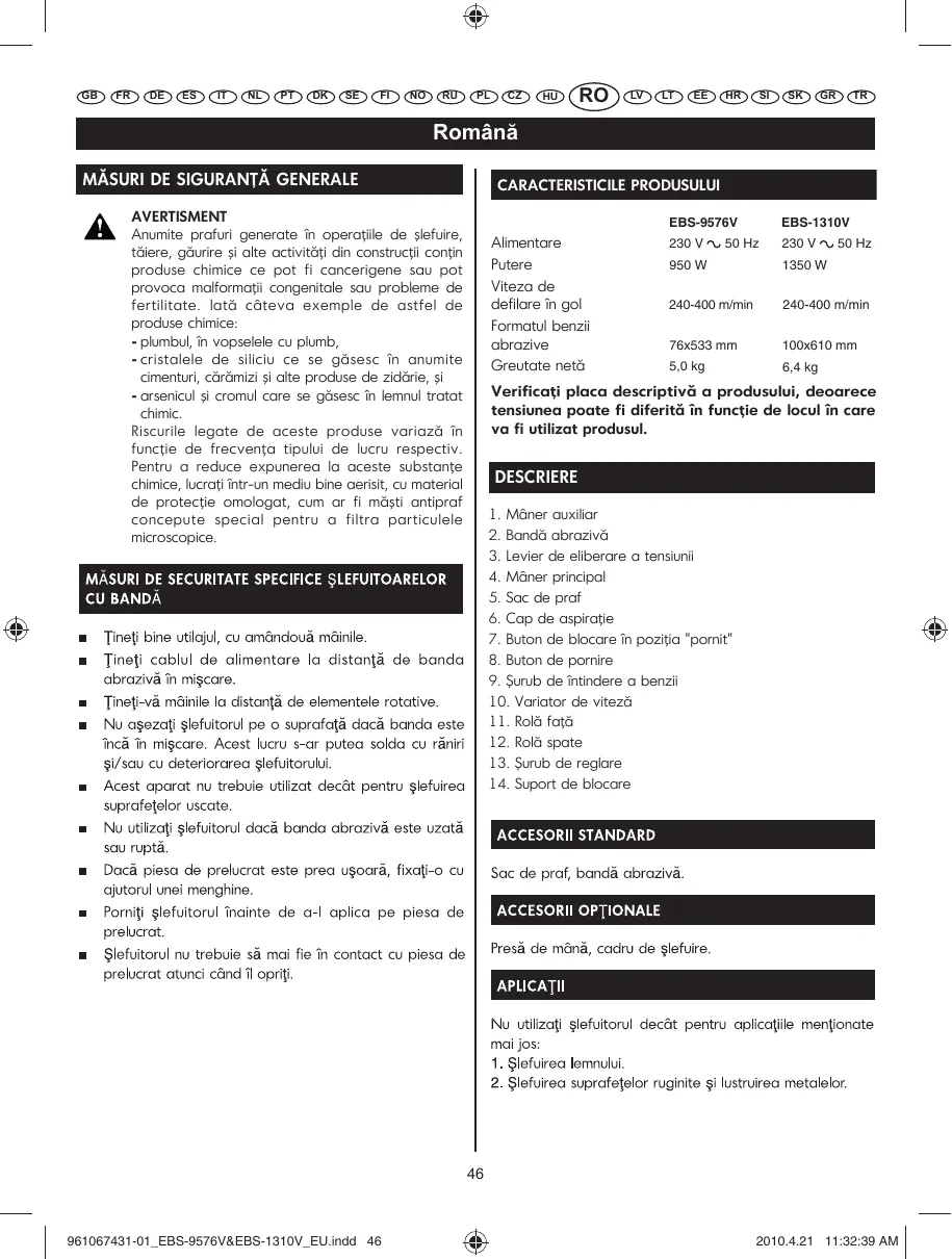 MANUAL DE UTILIZARE EBS9576VFHG RYOBI