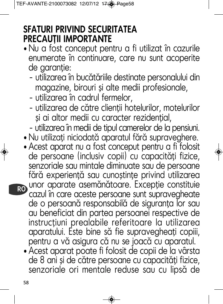 MANUAL DE UTILIZARE SW606812 TEFAL