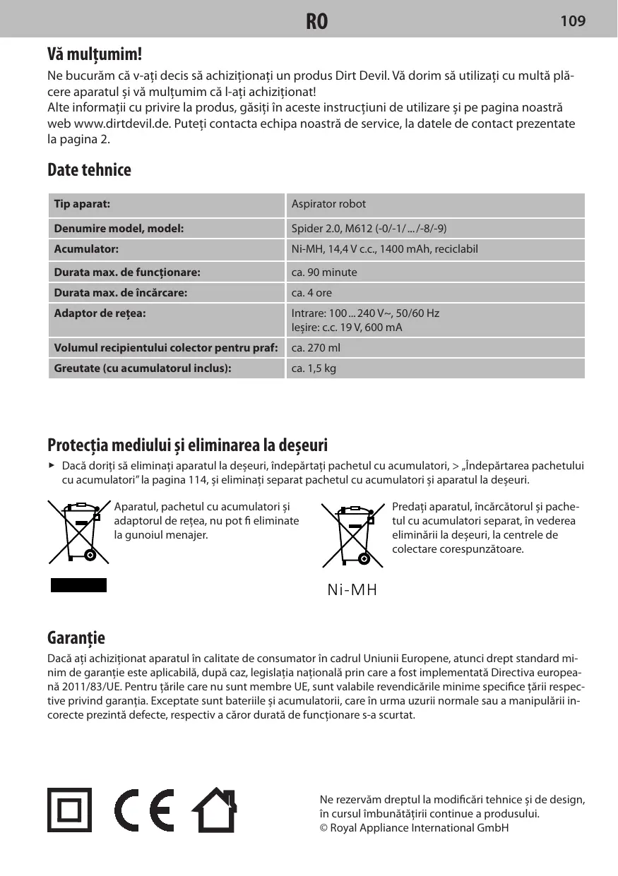 MANUAL DE UTILIZARE SPIDER 2,0 TRACKER M613 DIRT DEVIL