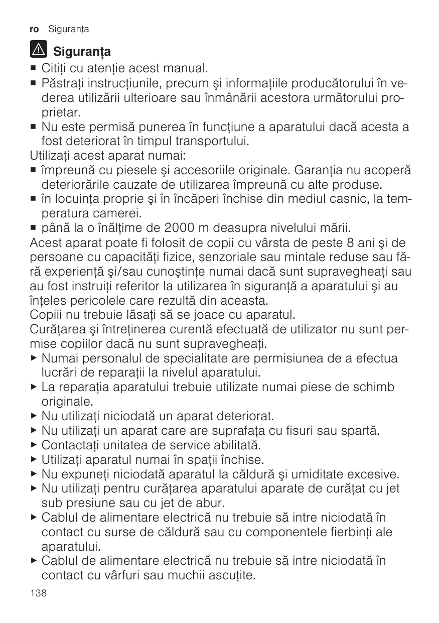 Curăṭarea Şi intreținerea curentă efectuata de utilizator nu sunt per-mise copiilor dacă nu sunt supravegheți.