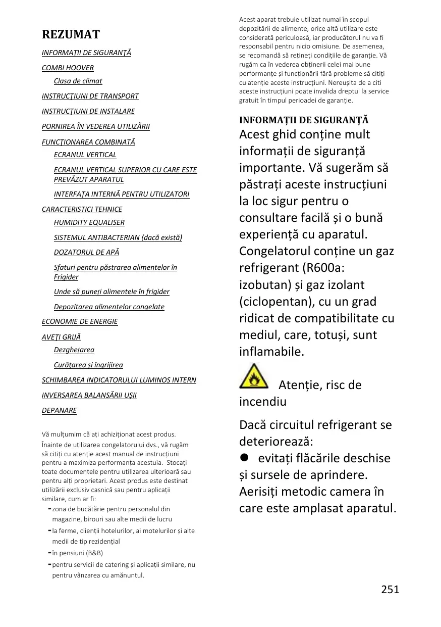 COMBI HOOVER L'appareil est conçu pour fonctionner à la plage limitée de la température ambiante, en fonction des zones climatiques. Ne pas utiliser l’appareil à des températures situées en dehors de la limite. La classe climatique de votre appareil est indiquée sur l'étiquette contenant la description technique à l'intérieur du compartiment réfrigérateur. Climate Class