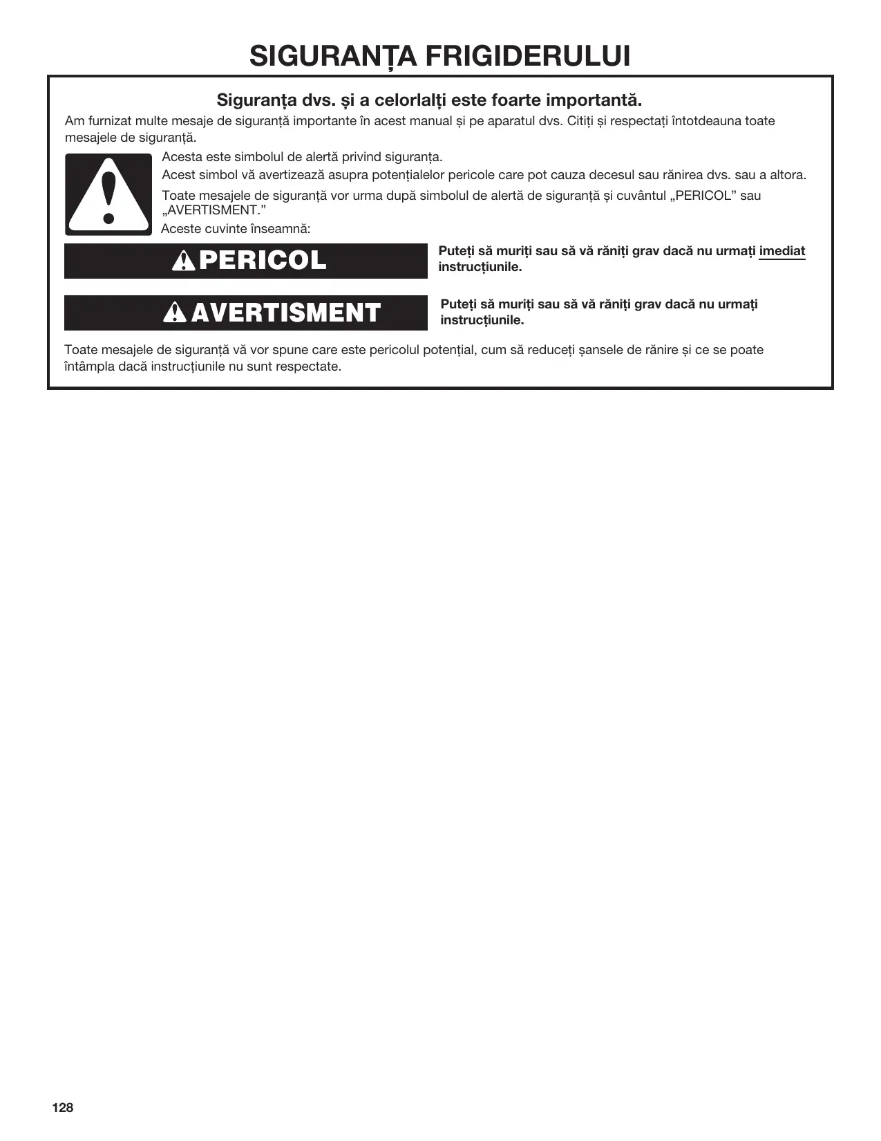Nerespectarea acestor instructiuni poate duce la deces, incendiu sau electrocutare.