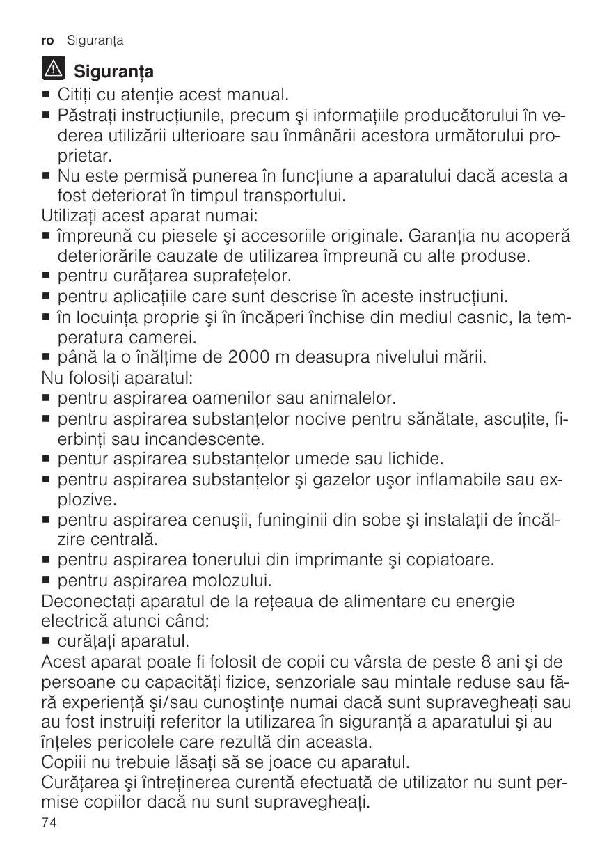 ¡ Read this instruction manual carefully. ¡ Keep the instruction manual and the product information safe for future reference or for the next owner. ¡ avec des pièces et accessoires d’origine. En cas de dommages dus à l’utilisation de produits tiers, le droit à la garantie expire. ¡ pour nettoyer les surfaces. ¡ pour les utilisations décrites dans cette notice. ¡ pour un usage domestique privé et dans les pièces fermées d’un domicile, à la température ambiante. ¡ jusqu'à une altitude maximale de 2000 m au-dessus du niveau de la mer. N’utilisez pas l’appareil : ¡ pour l’aspiration de personnes et d’animaux. ¡ pour l’aspiration de substances nocives pour la santé, aux arêtes vives, chaudes ou brûlantes. ¡ pour l’aspiration de substances humides ou liquides. ¡ pour l’aspiration de substances et gaz légèrement inflammables ou explosibles. ¡ pour l’aspiration de cendres, de la suie de four et d’installations de chauffage central. ¡ pour l’aspiration de poussières de toner des imprimantes et copieurs. ¡ pour l’aspiration de débris de construction. Débranchez l’appareil du secteur lorsque : ¡ vous nettoyez l’appareil. Les enfants de 8 ans et plus, les personnes souffrant d’un handicap physique, sensoriel ou mental ou ne détenant pas l’expérience et/ou les connaissances nécessaires pourront utiliser cet appareil à condition de le faire sous surveillance, ou que son utilisation sûre leur ait été enseignée et qu’ils aient compris les dangers qui en émanent. Les enfants ne sont pas autorisés à jouer avec l'appareil. 17