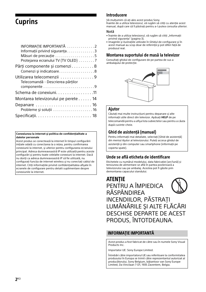 2FR AVIS IMPORTANT Ce produit a été fabriqué par ou pour le compte de Sony Visual