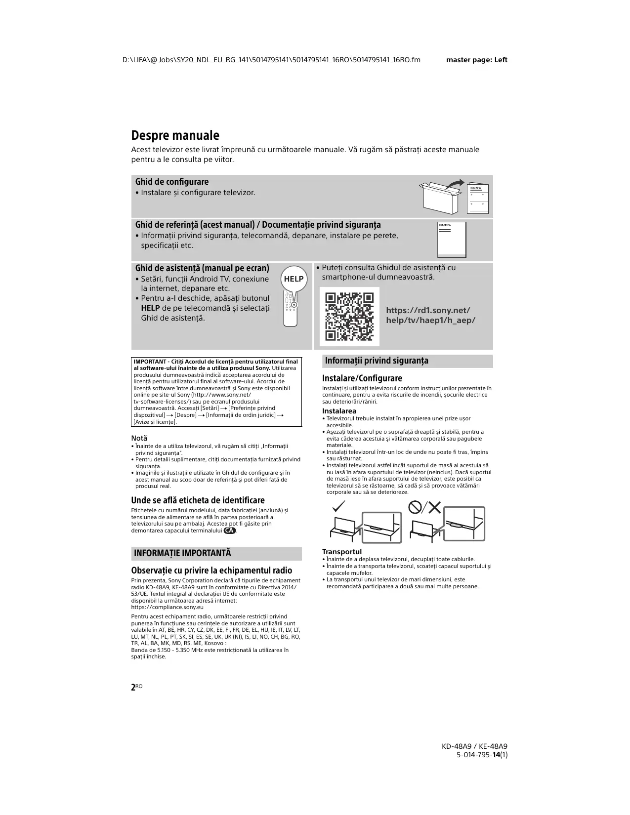 MANUAL DE UTILIZARE KE48A9 SONY