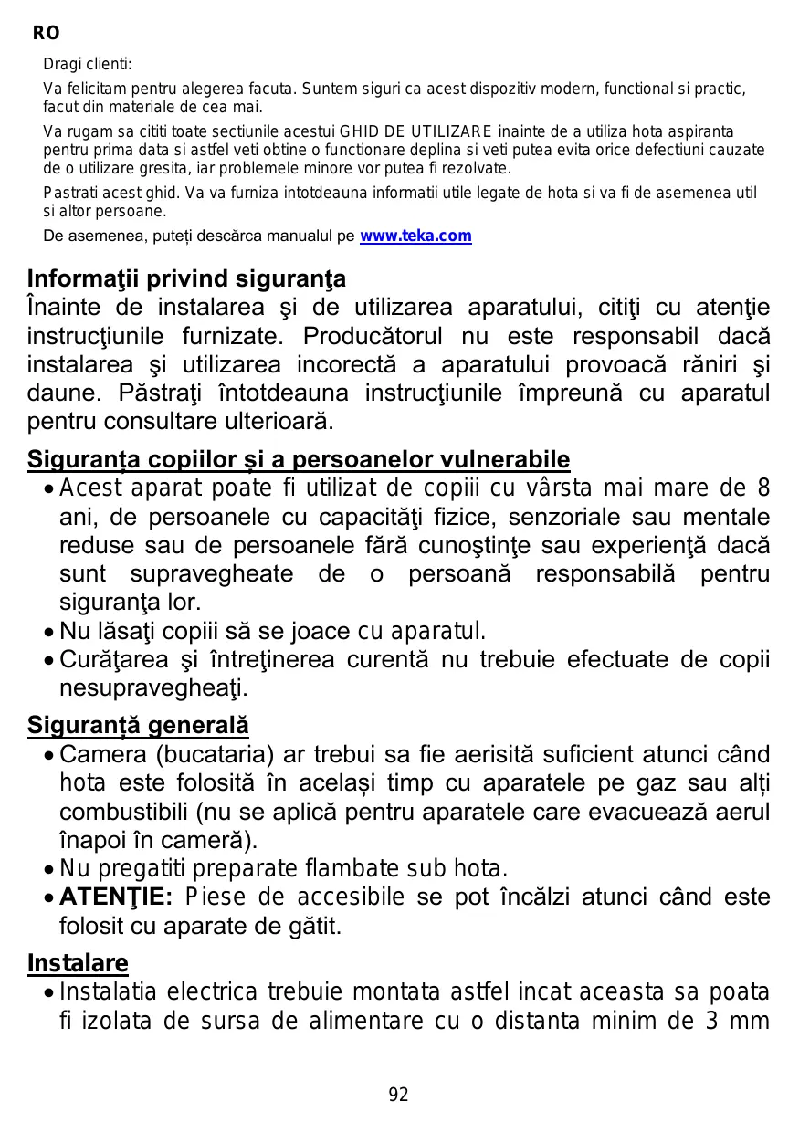 MANUAL DE UTILIZARE GFH 55 - GFH 73 TEKA