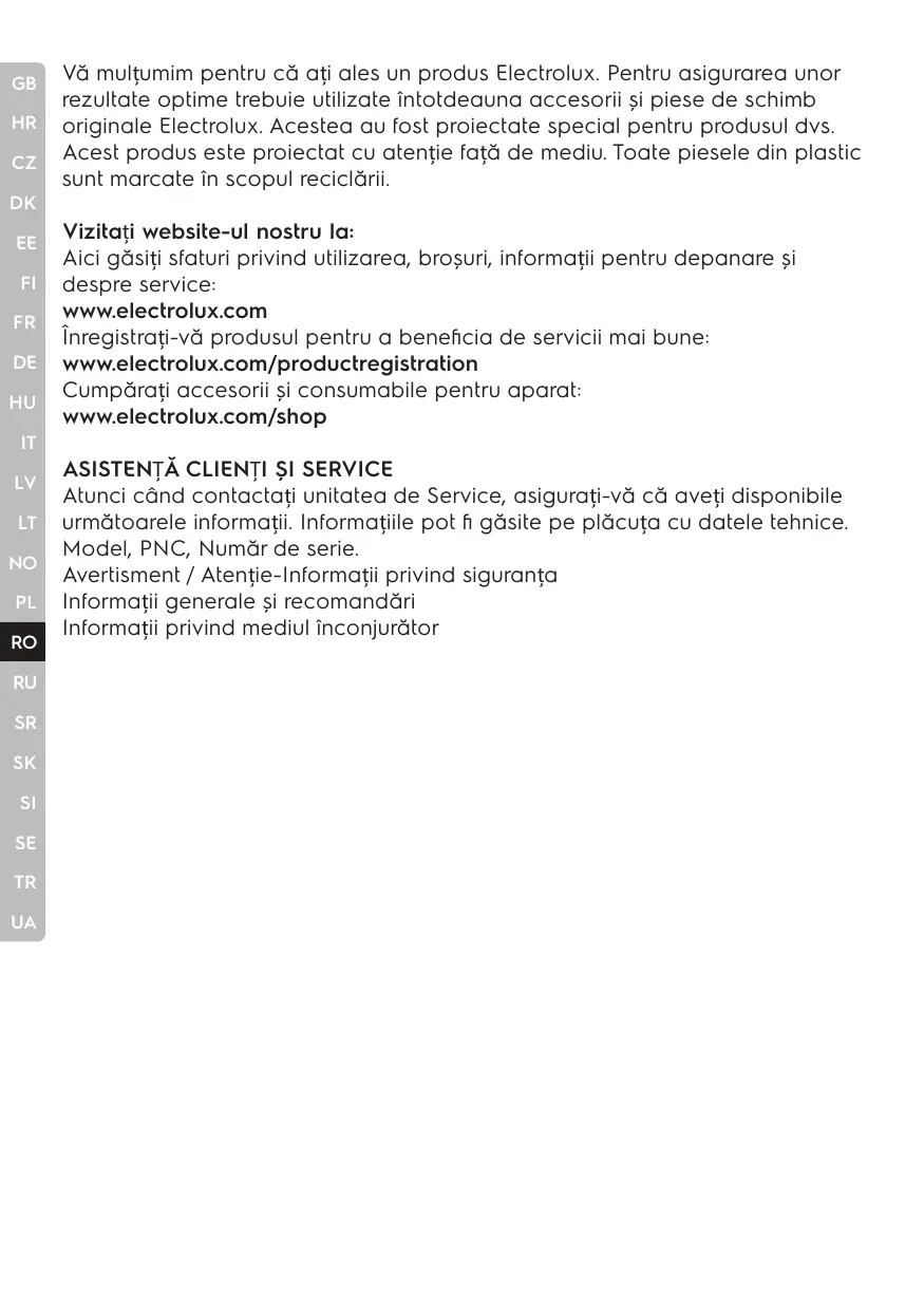 MANUAL DE UTILIZARE E4CM14ST ELECTROLUX