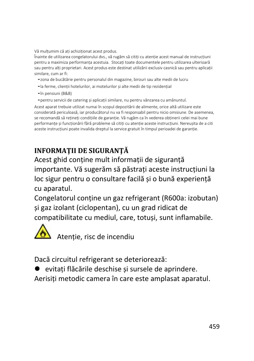 - pour les services de restauration et des applications similaires non destinées à une vente au détail. Cet appareil doit être utilisé uniquement à des fins de conservation d'aliments, toute autre utilisation est considérée comme dangereuse et le fabricant ne sera pas responsable de toute omission. De plus, il est recommandé de prendre note des conditions de garantie. Pour obtenir la meilleure performance possible et un fonctionnement sans problème de votre appareil, il est très important de lire attentivement ces instructions. Tout non-respect de ces instructions peut annuler votre droit à des services gratuits pendant la période de garantie.