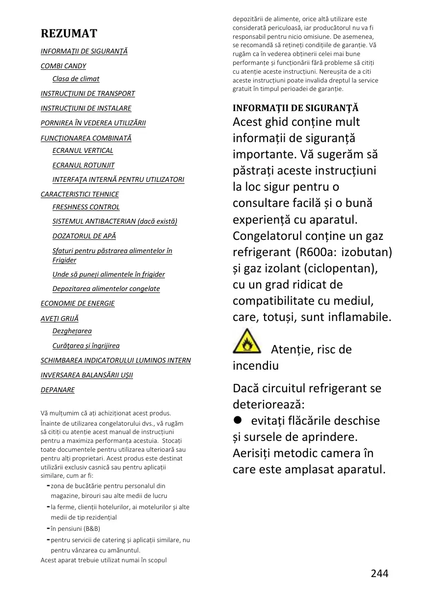 COMBI CANDY L'appareil est conçu pour fonctionner à la plage limitée de la température ambiante, en fonction des zones climatiques. Ne pas utiliser l’appareil à des températures situées en dehors de la limite. La classe climatique de votre appareil est indiquée sur l'étiquette contenant la description technique à l'intérieur du compartiment réfrigérateur. Climate Class