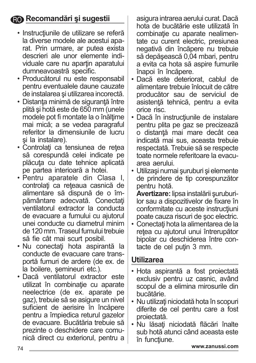 MANUAL DE UTILIZARE ZHI612G ZANUSSI